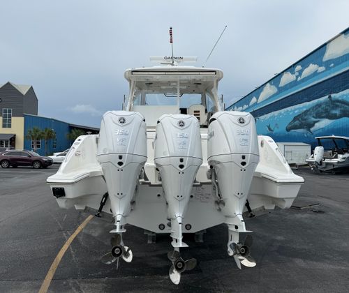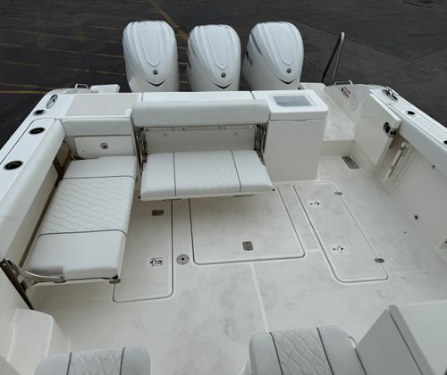 Power and precision define the Pursuit 355 OS. Equipped with three robust engines delivering a combined 1,050 horsepower, this cruiser boat is built for exhilarating rides and reliable performance. Whether you’re cruising along the coastline or venturing into open waters, the triple-engine setup ensures smooth acceleration, responsive handling, and impressive speed. The advanced engineering behind the Pursuit 355 OS guarantees a stable and comfortable journey, making it an ideal choice for those who value both excitement and safety on the water.