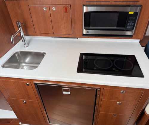 Imagine the possibilities with the Pursuit 355 OS. This cruiser boat for sale is perfect for a wide range of activities, from leisurely family outings to exciting fishing adventures and luxurious coastal escapes. Host sunset dinners on the Bridgedeck Teak Table, relax with friends on the forward sunpad, or take advantage of the advanced Garmin radar to chart new courses and discover hidden coves.The spacious layout and versatile seating make it easy to accommodate guests, while the air-conditioned cockpit ensures comfort during extended trips. The Pursuit 355 OS is equally at home cruising along scenic shorelines, anchoring at secluded beaches, or navigating bustling harbors. Its combination of performance, luxury, and practicality makes it an ideal choice for those who want to make the most of every moment on the water.