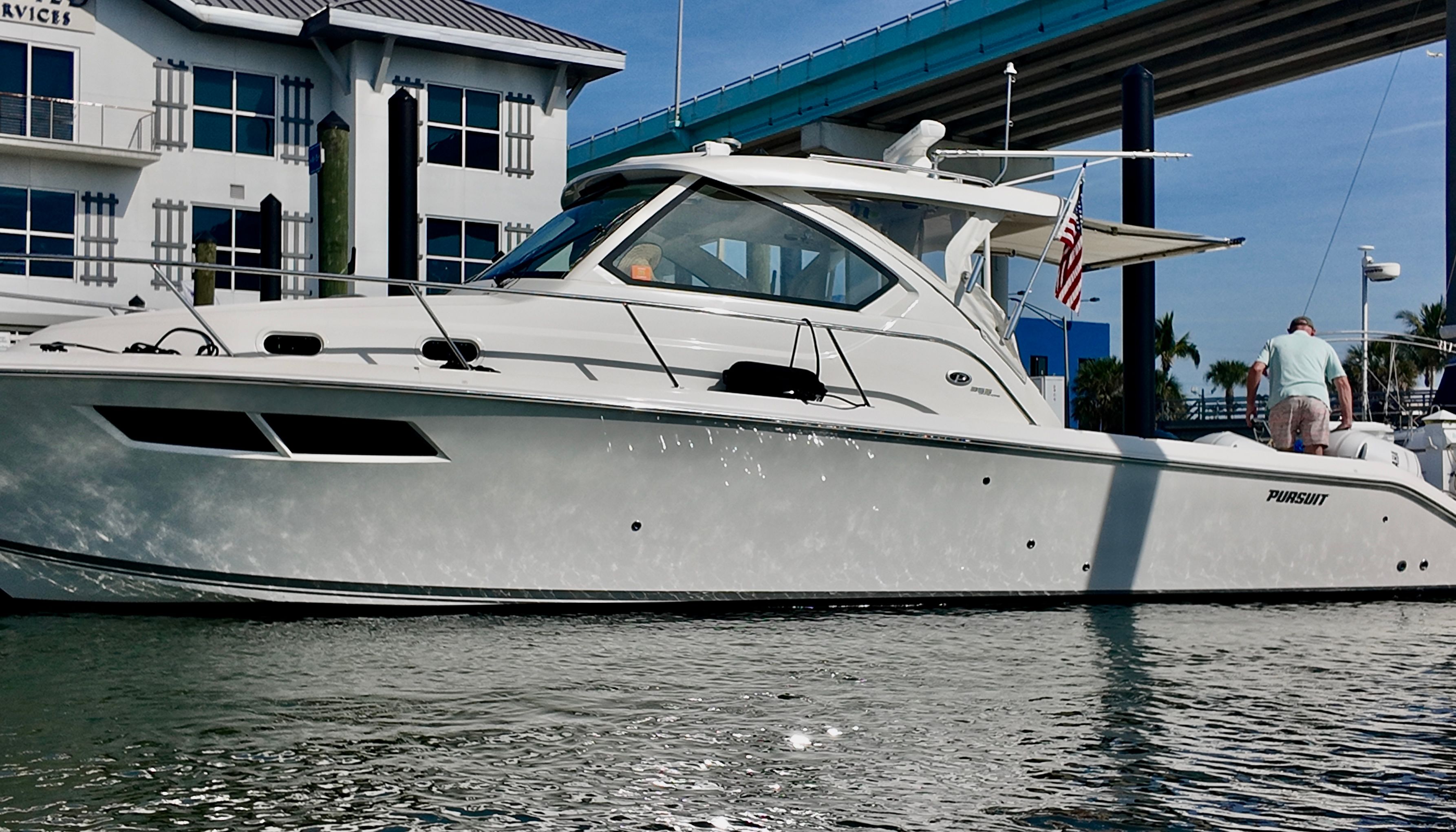 The Pursuit 355 OS has the overall rated best-in-class profile design /performance, bridge to deck layout, functional cockpit zone that does not need conversion, most useable and function galley, and the largest V-berth with other competitors in this vessels category. The Pursuit OS 355 offers excellent cabin height with a 6' 8" headroom, allowing most adults to stand comfortably, featuring teak floors, a convertible dining/sleeping area with an electric table, and a well-appointed head with a separate shower, making it feel spacious and luxurious for its size and serious offshore capability. The only thing you’ll need is to bring to the dock is yourself, a cocktail, and some fishing gear to go on your next offshore adventure!
