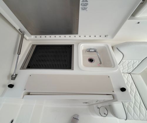 Practicality meets luxury in the Pursuit OS 355. The fold-down seat on the starboard gunwale offers convenient storage and seating solutions, maximizing space without sacrificing comfort. The forward deck sun lounge cushions are perfect for sunbathing or relaxing, and the included cover protects them from the elements when not in use. Docking is made easier thanks to the boat’s thoughtful design and maneuverability, while the efficient Yamaha engines help keep fuel costs manageable.The cockpit air conditioning system ensures that hot summer days never get in the way of your enjoyment, and the durable vinyl upholstery is easy to clean and maintain. Whether you’re planning a day trip, an overnight excursion, or a weekend getaway, the Pursuit OS 355 is equipped to handle all your needs with style and efficiency.