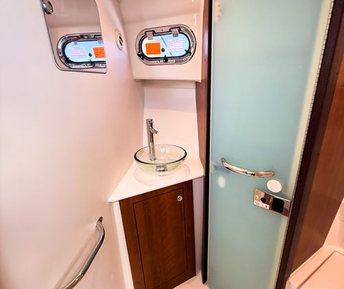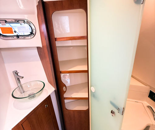 Step aboard and discover a world of comfort and convenience. The Pursuit OS 355 is packed with special features designed to enhance your boating experience. The Multifunction Display Interface keeps you informed and in control, while the Manual Engine Flushing System simplifies maintenance and helps extend engine life. On deck, the Bridgedeck Teak Table with dedicated storage offers a stylish space for dining or socializing, and the electric retractable cockpit sunshade provides instant relief from the midday sun. Enjoy year-round comfort with cockpit air conditioning and reverse cycle heat (240V / 60Hz), ensuring the perfect climate no matter the season. The forward deck sunpad invites you to relax and soak up the rays, making every moment on board a pleasure.