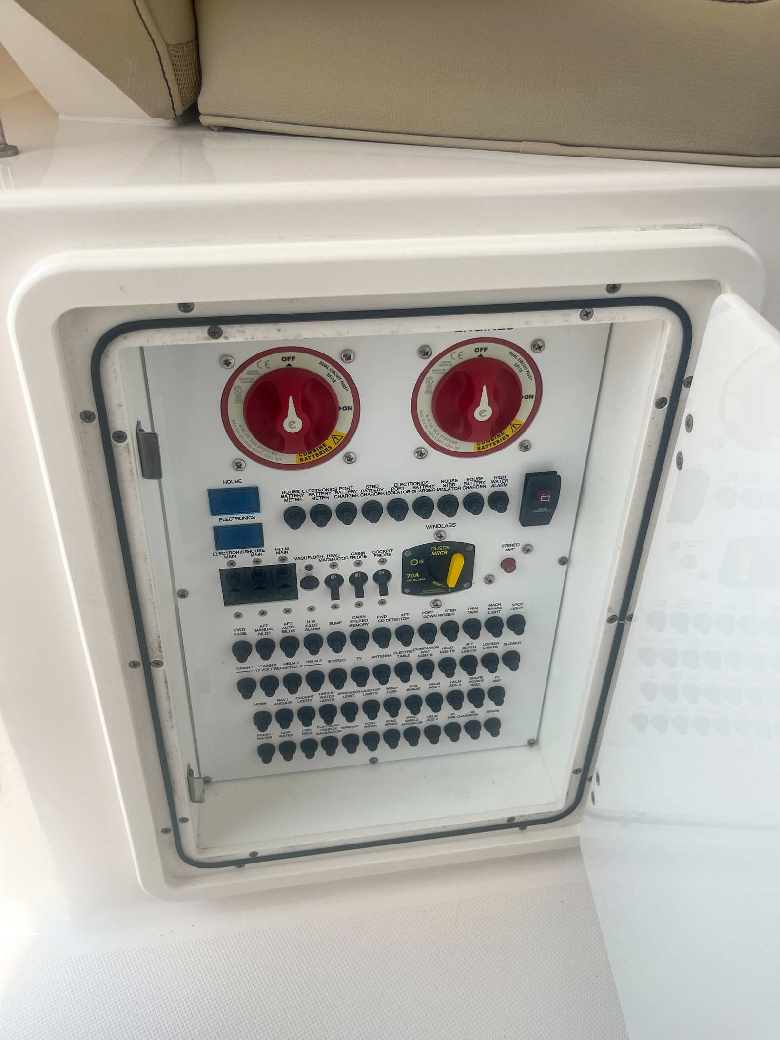 Under the hood, the Pursuit OS 355 is powered by twin engines that deliver a combined 700 horsepower, ensuring a smooth and exhilarating ride every time you hit the water. With only 352 engine hours, these engines have plenty of life left, offering reliability and peace of mind for future adventures. The dual-engine setup provides excellent maneuverability and acceleration, making it easy to navigate through various water conditions. Whether you’re cruising along the coastline or heading out to deeper waters, the Pursuit OS 355’s powerful engines guarantee a responsive and enjoyable boating experience.
