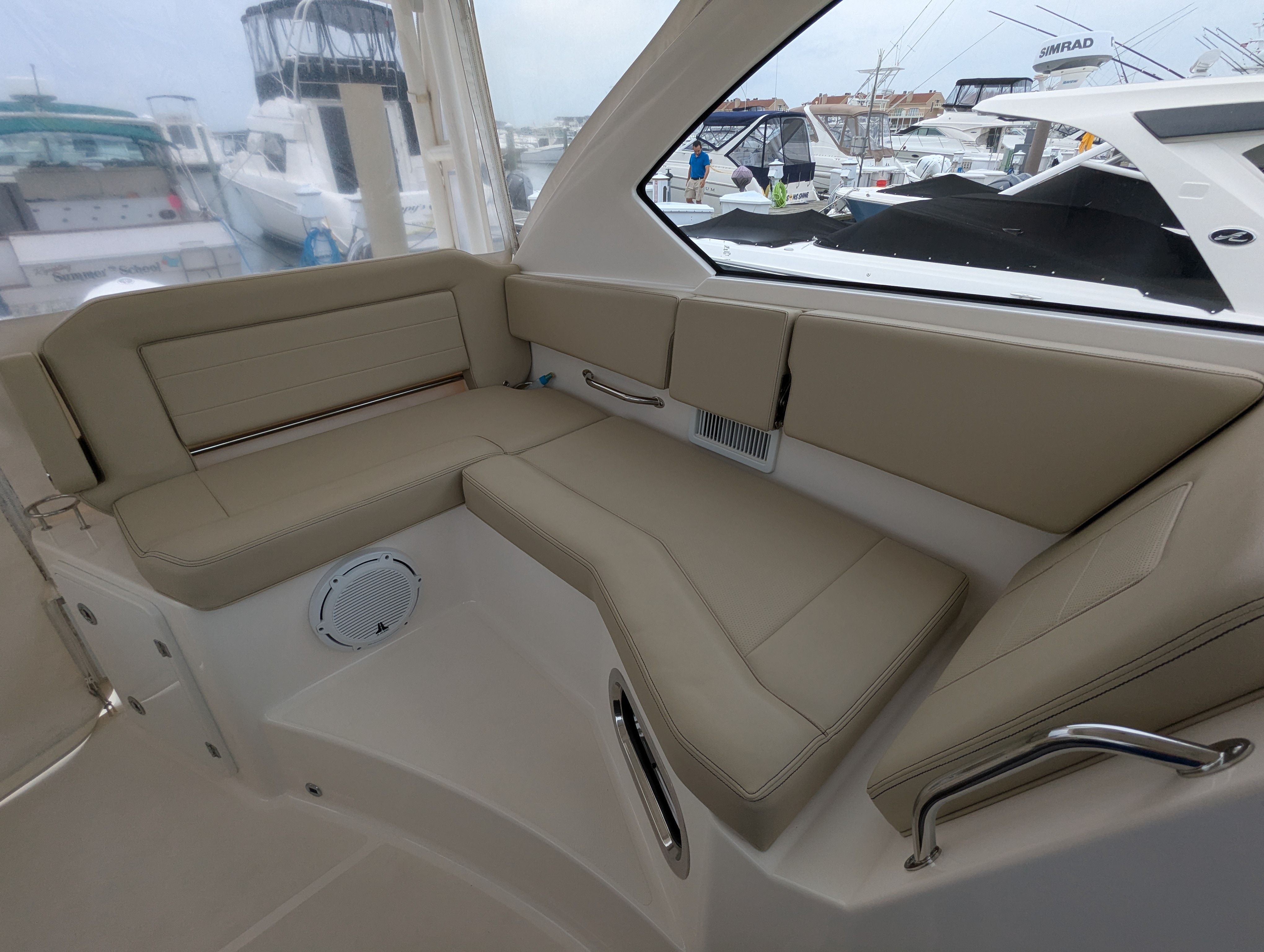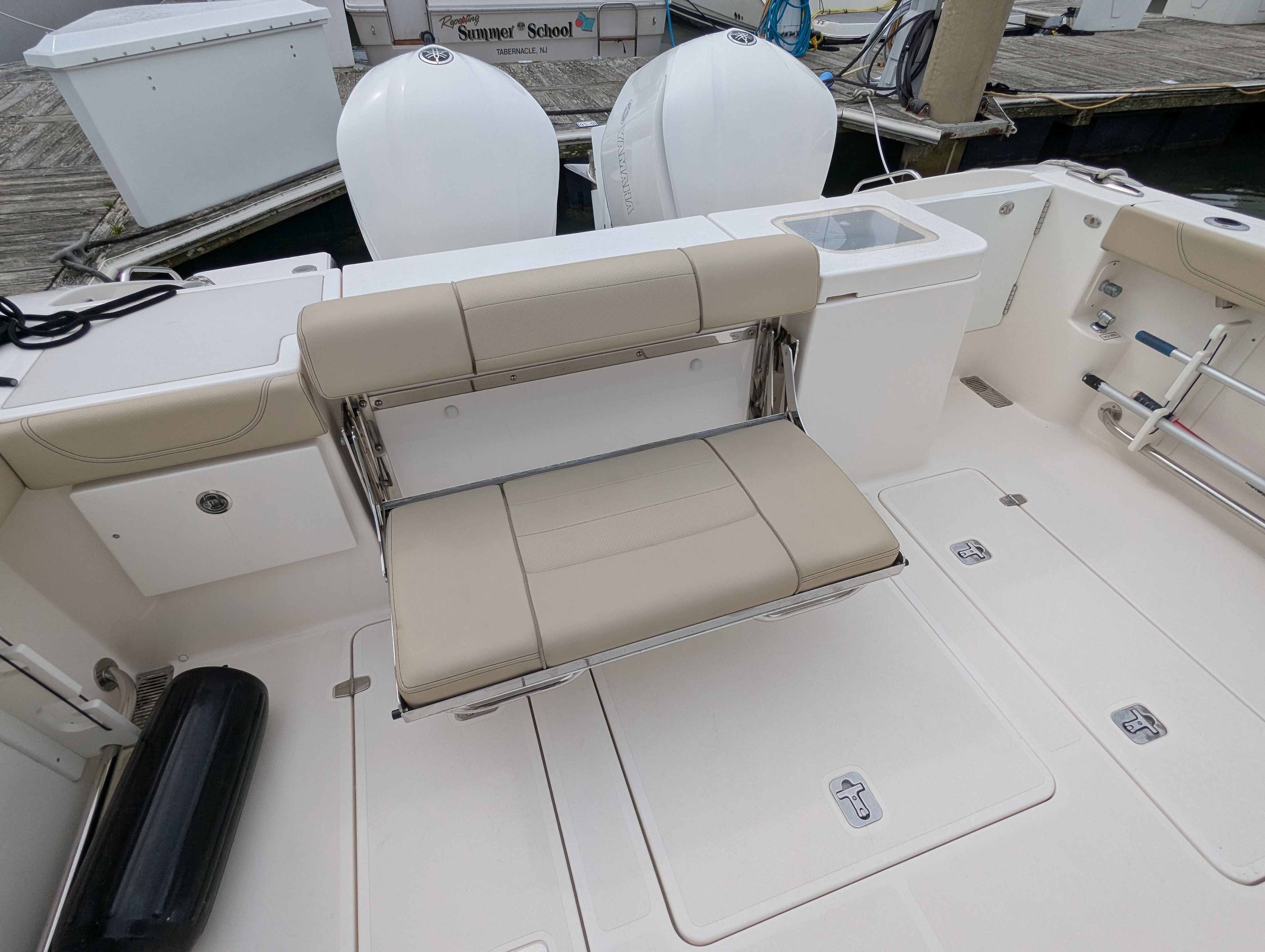 Powering the Pursuit OS 355 are two robust engines, delivering a combined 700 horsepower. With only 201 engine hours, these engines have plenty of life left, promising reliable performance and exhilarating speed. Whether you’re cruising along the coastline, heading out for a weekend getaway, or exploring new waters, the OS 355’s twin-engine setup ensures smooth handling, quick acceleration, and impressive fuel efficiency.The dual engines not only provide ample power for a variety of activities but also enhance maneuverability and safety. Navigating tight marinas or docking becomes a breeze, while the horsepower allows you to reach your destination swiftly and comfortably. For those who appreciate the thrill of boating, the Pursuit OS 355’s performance metrics make it a standout choice among cruiser boats for sale.