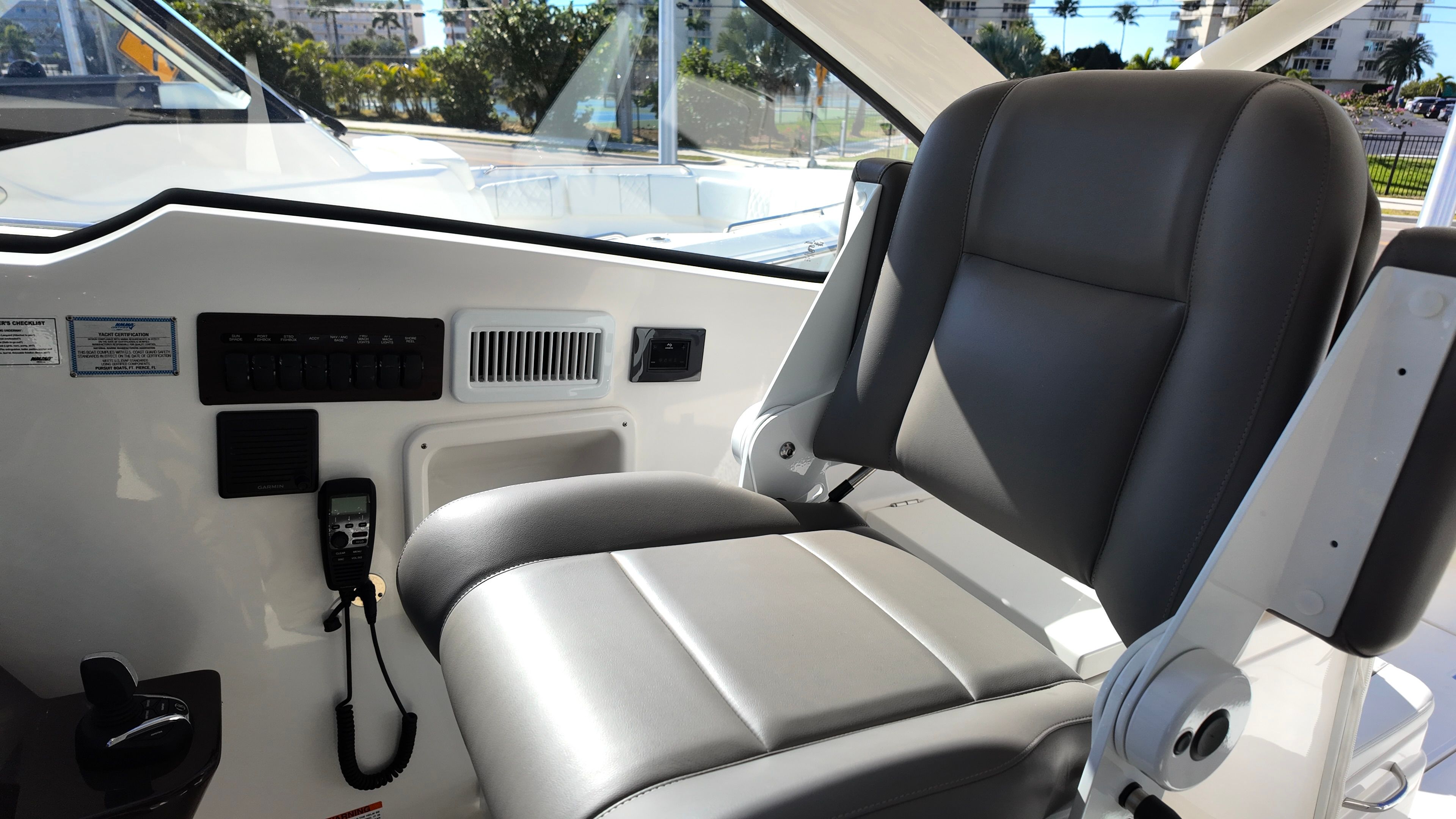 Owning the Pursuit OS 405 Cruiser means embracing a lifestyle of comfort, excitement, and social connection. The spacious deck and thoughtfully arranged seating areas invite you to unwind with family and friends, whether you’re soaking up the sun, enjoying a meal, or simply taking in the scenic views. The advanced entertainment system, including upgraded speakers and subwoofer, ensures that every moment on board is accompanied by your favorite tunes, setting the perfect mood for any occasion.The OS 405’s innovative features, such as the Garmin electronics suite and FLIR Thermal Camera, provide peace of mind and convenience, allowing you to focus on enjoying your time on the water. The underwater lights create a captivating atmosphere for evening cruises, while the tranquil sea interior offers a serene retreat after a day of adventure. With its powerful engines and agile handling, this Pursuit boat for sale delivers both excitement and reliability, making every outing memorable.