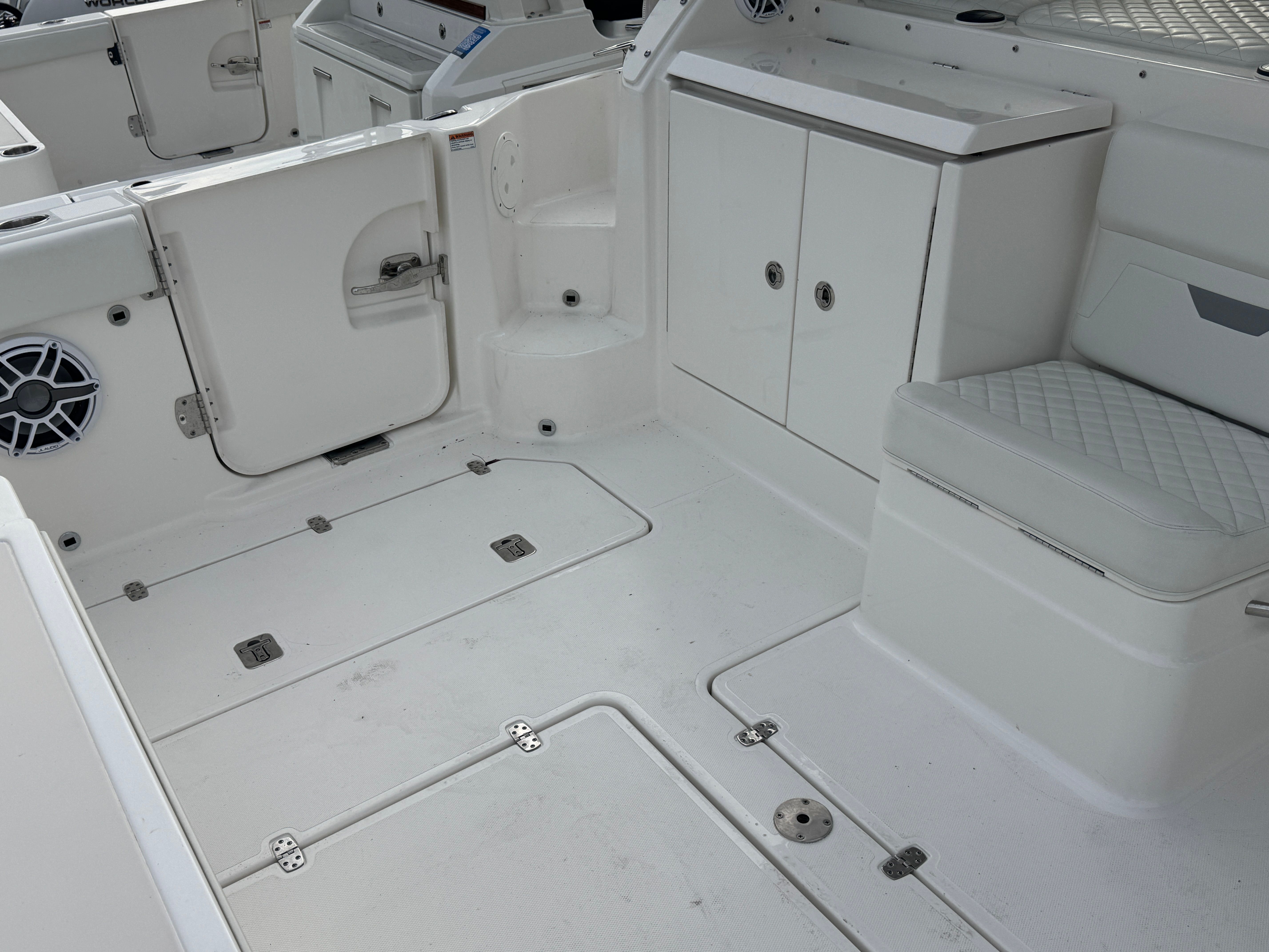 The Pursuit 405 OS is packed with features designed to enhance your boating experience. Its spacious 43-foot length provides plenty of room for guests, while the thoughtfully designed layout ensures comfort and convenience at every turn. The helm station offers excellent visibility and intuitive controls, making navigation a breeze. The cockpit and cabin areas are crafted with premium materials, reflecting Pursuit’s attention to detail and commitment to luxury.Special features of the Pursuit 405 OS include advanced navigation systems, plush seating, and ample storage options. The boat’s design maximizes both indoor and outdoor living spaces, allowing you to enjoy the sun, sea, and scenery in style. Whether you’re hosting a sunset cocktail party or enjoying a quiet morning on the water, this Pursuit boat for sale is equipped to meet your every need.