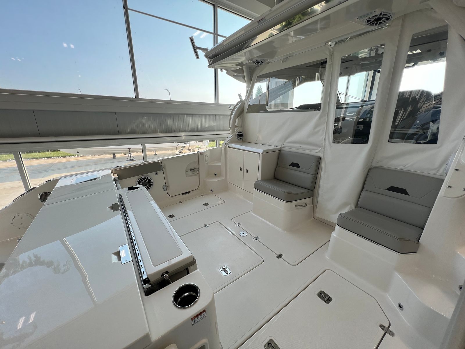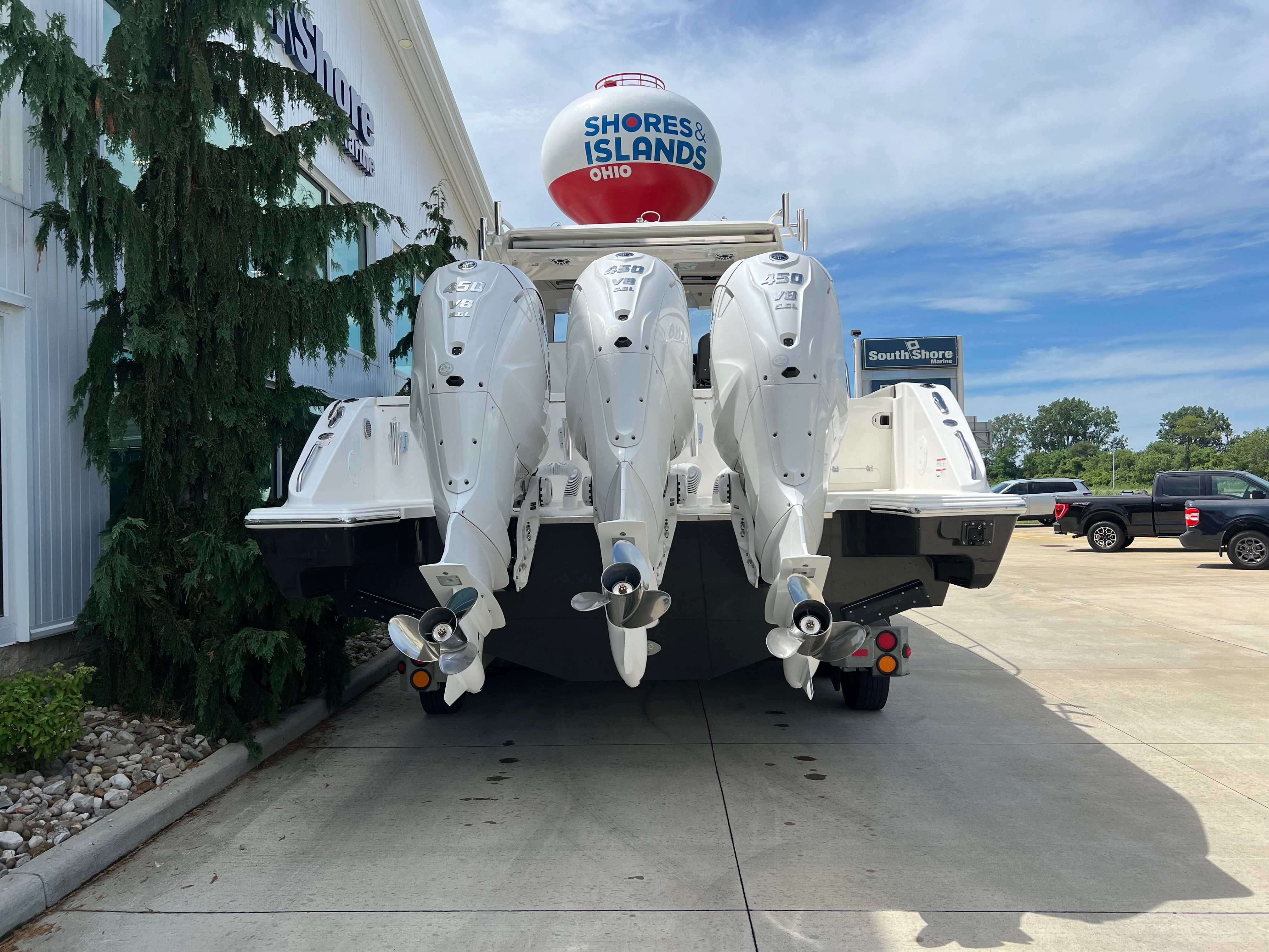 Powering the Pursuit 405 OS are three high-performance engines, delivering a combined 1350 horsepower. This formidable setup ensures exhilarating acceleration, smooth cruising, and reliable handling in a variety of conditions. Whether you are navigating coastal waters or embarking on longer journeys, the triple-engine configuration provides the confidence and power needed for any adventure. The advanced engineering behind the 405 OS guarantees a responsive and agile ride, making every outing both exciting and enjoyable.
