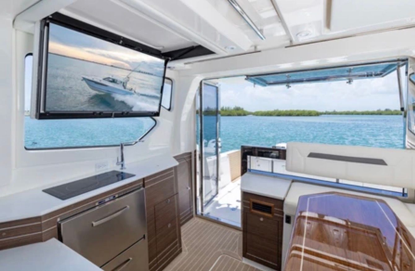 The 2026 Pursuit OS 445 is loaded with features that enhance both convenience and enjoyment. Its spacious deck layout is designed for socializing, with plenty of room for friends and family to gather and relax. The high-quality construction and attention to detail are evident throughout, from the premium materials used in the seating and finishes to the thoughtfully arranged helm station that puts all controls within easy reach. The OS 445’s innovative design maximizes usable space, ensuring that every inch of the boat is both functional and inviting.