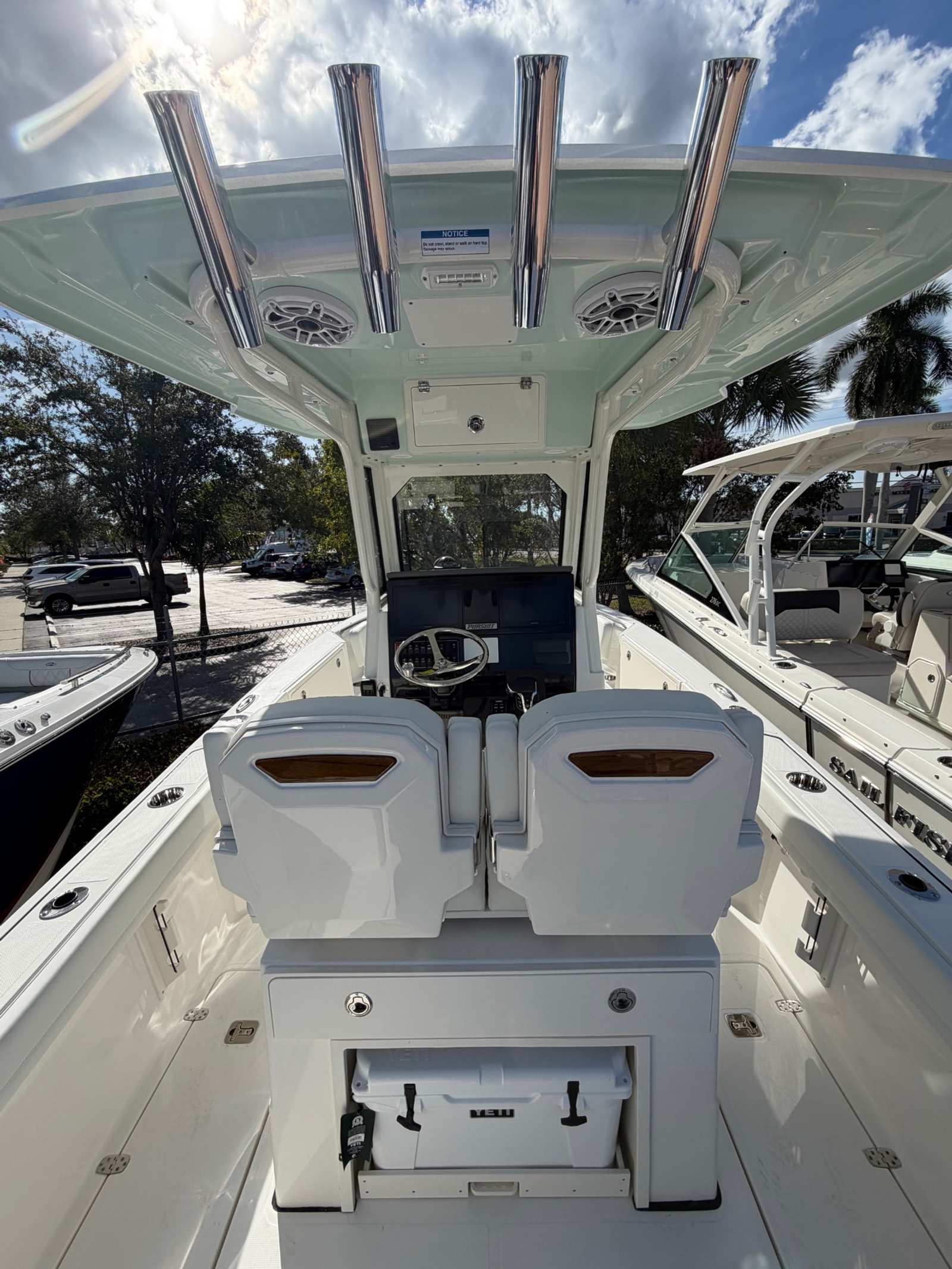 Practicality is at the heart of the Pursuit S 248’s design. The efficient Yamaha engine and streamlined hull contribute to excellent fuel economy, allowing you to spend more time on the water and less at the fuel dock. The windlass anchor system with remote simplifies the anchoring process, making it easy to secure your spot without hassle. Storage is thoughtfully integrated throughout the boat, ensuring that gear, supplies, and personal items are always within reach yet neatly stowed away.Docking and maneuvering are made simple thanks to the responsive handling and intuitive controls, making this center console an excellent choice for both seasoned boaters and those new to the water. The protective covers for the engine and leaning post help preserve the boat’s appearance, reducing maintenance and keeping your investment looking its best.