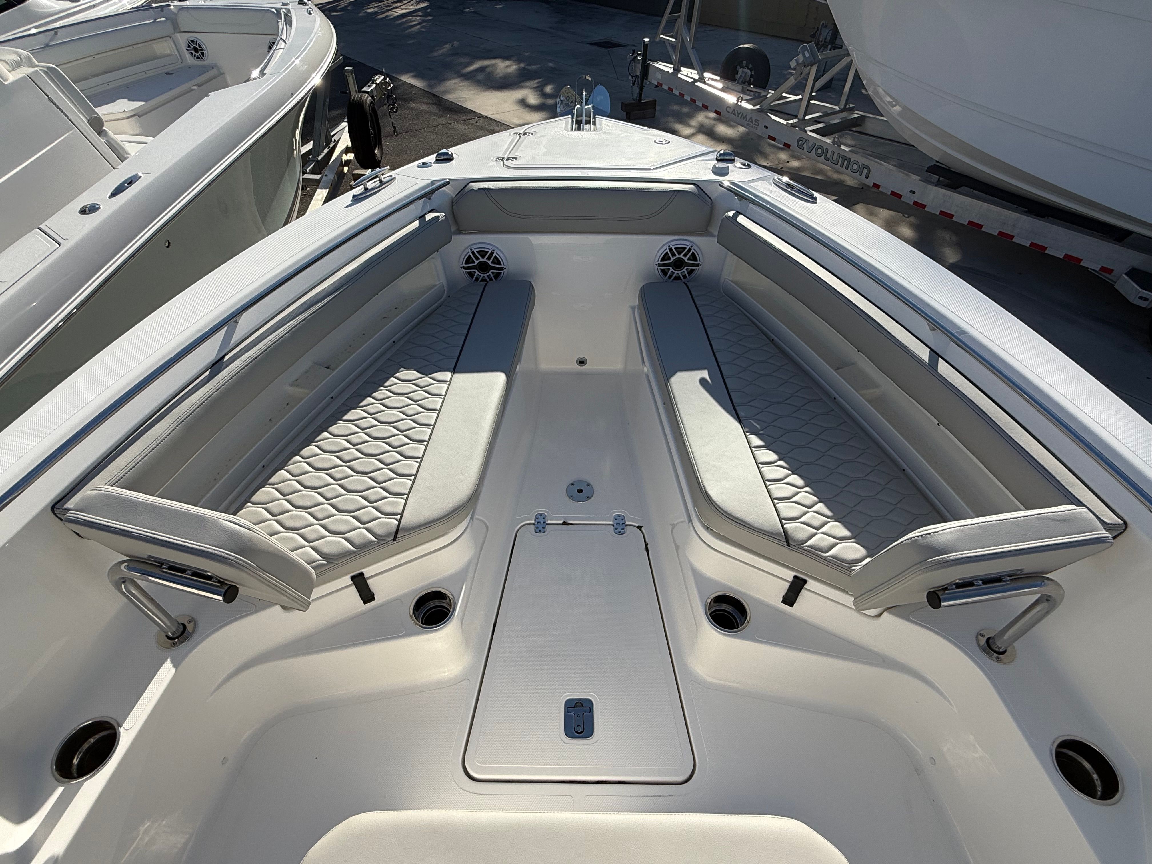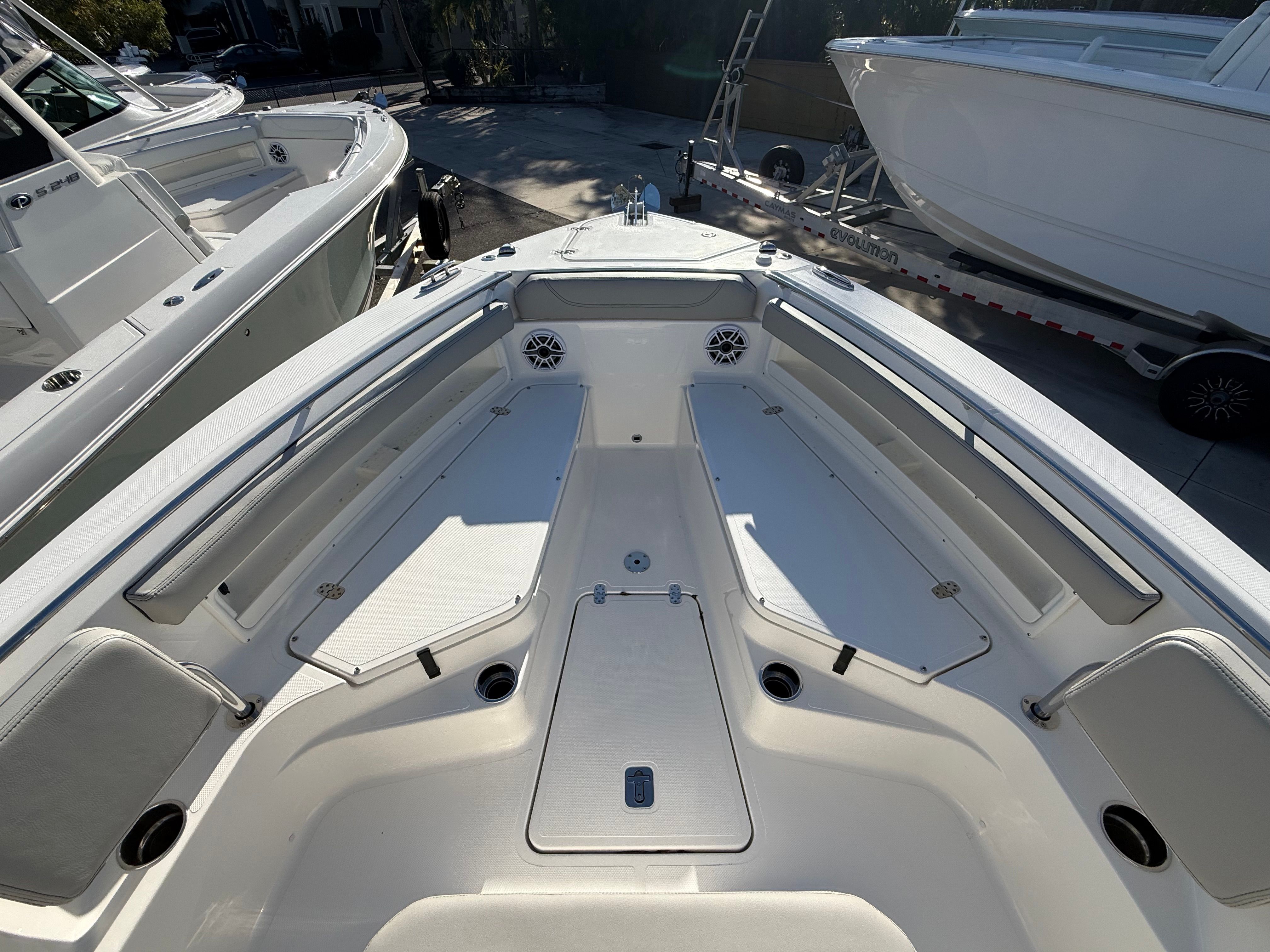 The Pursuit S 248 Center Console is loaded with premium features that enhance both comfort and convenience. The hull’s Fresh White color is beautifully accented by the Platinum bootstripe, while the helm control in Carbon adds a touch of modern sophistication. The hardtop liner, also in Fresh White, provides shade and protection from the elements, ensuring a comfortable experience for everyone on board.Step aboard and you’ll immediately notice the Sea Salt exterior upholstery, which not only looks stunning but is also designed for durability and easy maintenance. The Deluxe Beach with Bow Boarding Ladder makes it effortless to access the water, whether you’re anchored at your favorite sandbar or exploring a secluded cove. The anchor windlass add-on simplifies anchoring, allowing you to secure your position with the push of a button.For added comfort and convenience, the Pursuit S 248 features an upgraded electric freshwater head and holding tank, providing a touch of luxury for longer days on the water. As the sun sets, the all color spectrum underwater lights transform your boat into a vibrant oasis, creating an inviting atmosphere for evening cruises and dockside gatherings.
