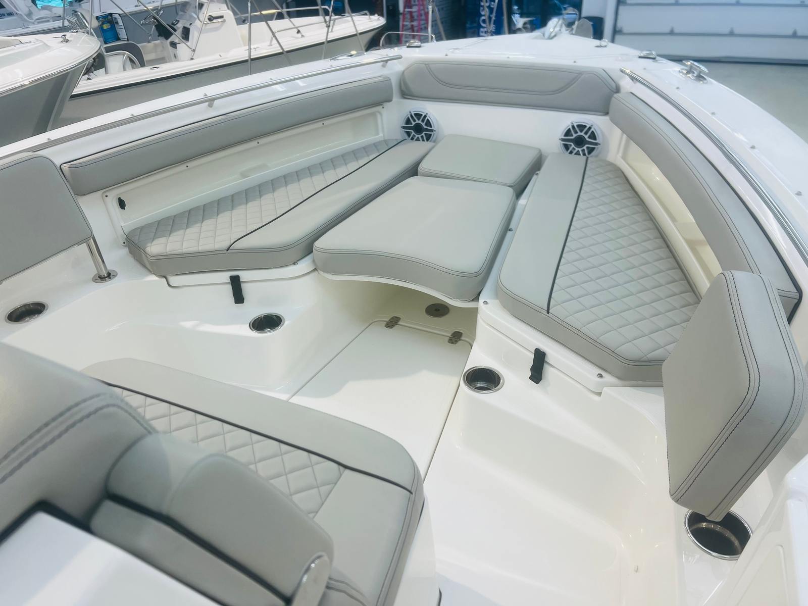 At the heart of the Pursuit S 248 is a powerful Yamaha Digital F300 V6 Offshore engine, finished in a stunning Pearlescent White. With 300 horsepower at your command, this Center Console boat is engineered for exhilarating performance, whether you’re cruising along the coastline, heading offshore for a day of fishing, or making a quick run to your favorite waterfront restaurant. The integrated Digital Electric Steering (DES) and Helm Master EX Digital Electronic Control (DEC) system provide precise, effortless handling and smooth throttle response, ensuring you’re always in complete control. This advanced setup not only enhances your boating experience but also delivers the reliability and efficiency that Yamaha engines are known for.
