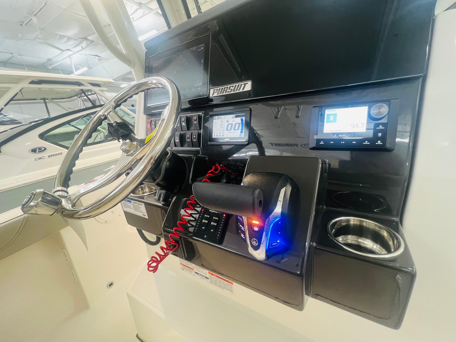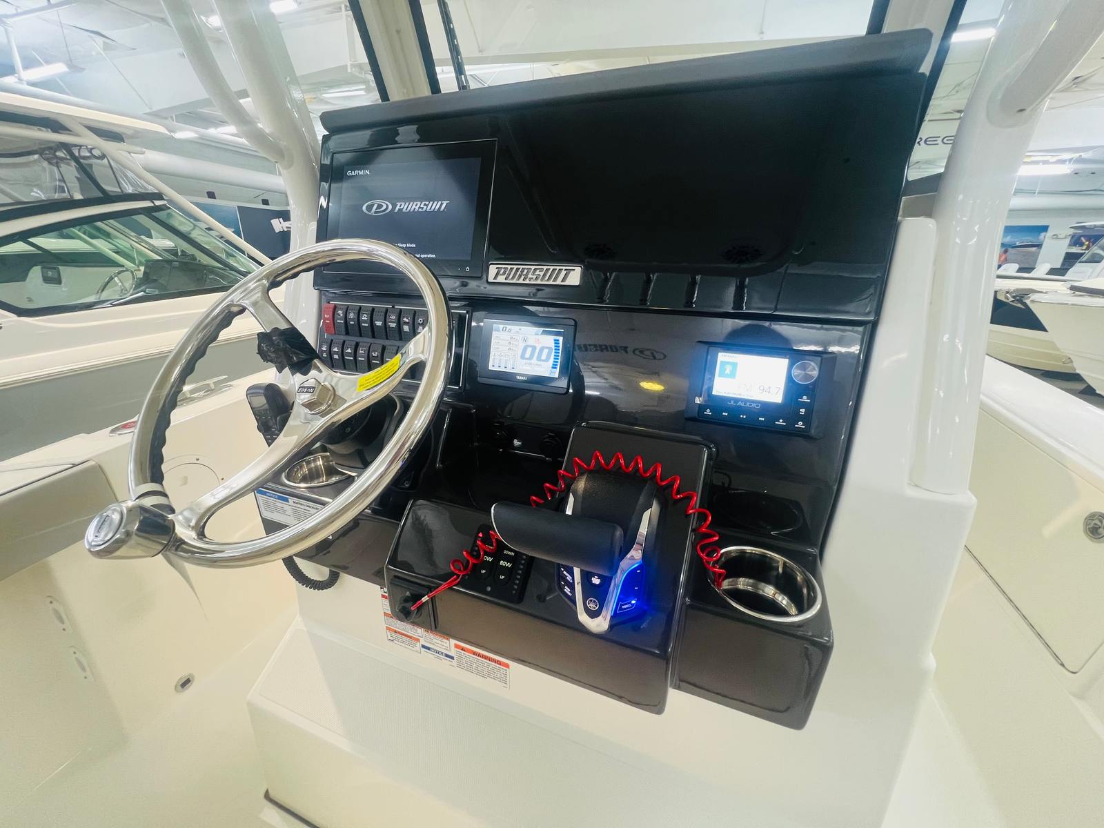 - Garmin Electronics Package (GPSMAP 8612XSV, Airmar B75M 20 Degree 600 watt CHIRP Transducer, NMEA 2000 Starter kit, Pursuit Custom Dash Panel, VHF radio)