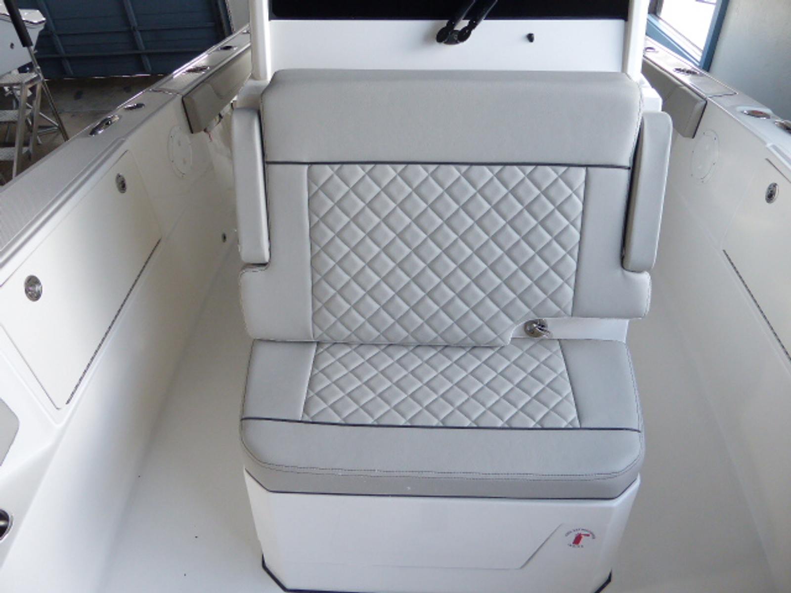 - Premium Helm Seating w/Four (4) Folding Armrests, Articulating Flip-up Bolsters, Upgraded Seat Slide with Fore/Aft Adjustments, and Edson® 316L SS Steering Wheel with Control Knob and Non-Slip Grip