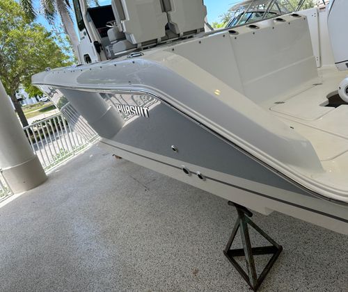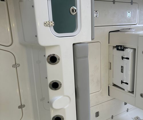The Pursuit S 248 Center Console is loaded with features designed to enhance your time on the water. The Sea Salt exterior upholstery provides a comfortable and stylish seating arrangement, perfect for relaxing with friends and family. The deluxe beach with bow boarding ladder makes it easy to access the water for swimming or boarding from the shore, adding a new dimension of fun to your boating adventures. For effortless anchoring, the anchor windlass add-on offers convenience and safety, allowing you to secure your position with the push of a button.The upgraded electric fresh water head and holding tank bring a touch of luxury and practicality, ensuring comfort during longer outings. Mid-level accent lights and four blue LED lights create a vibrant and inviting atmosphere, perfect for evening cruises or entertaining guests after sunset. Every detail of this Pursuit boat for sale is thoughtfully designed to maximize enjoyment, safety, and convenience.