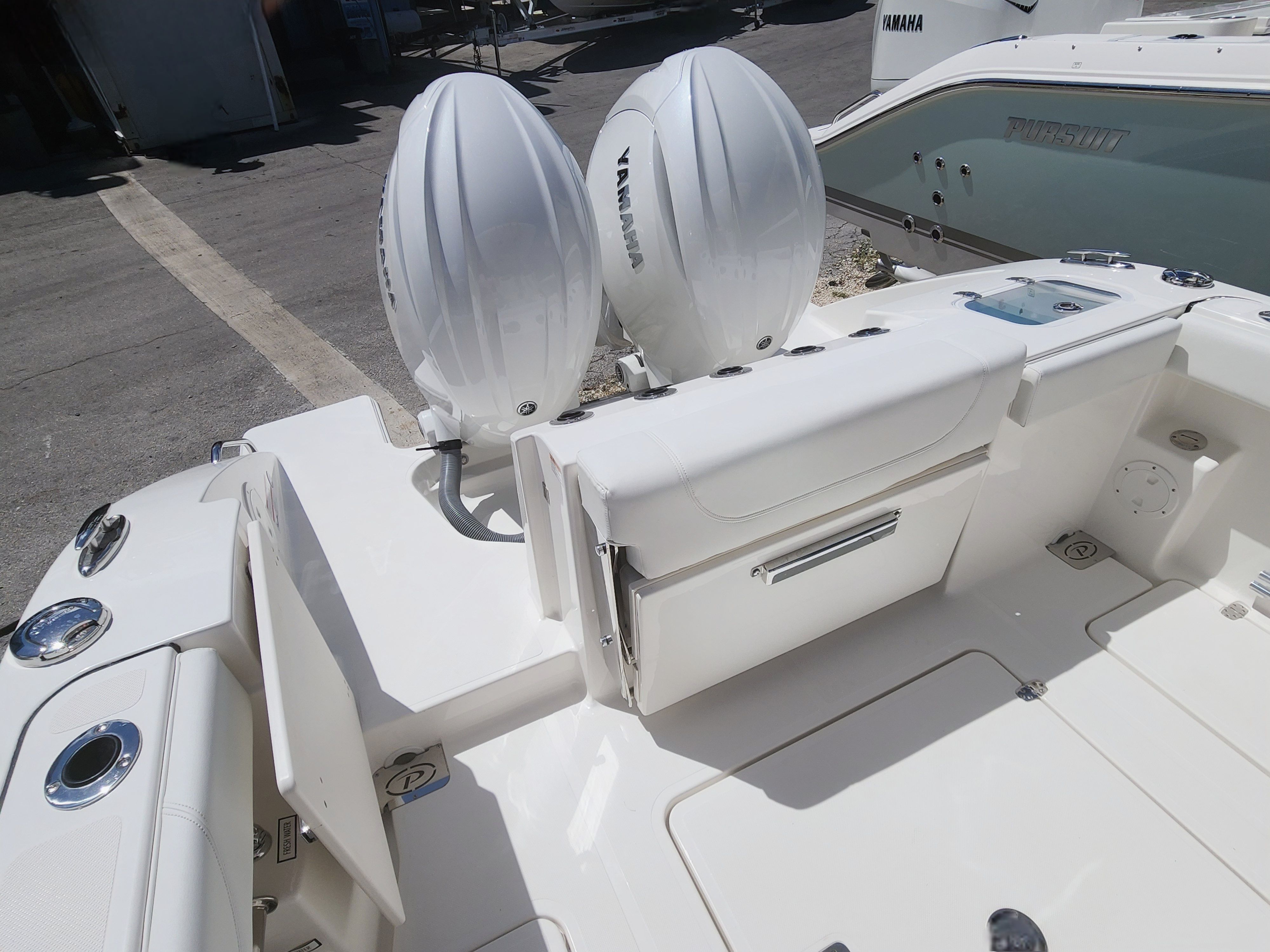 Practicality is at the heart of the Pursuit S 268’s design. The Anchor Windlass System with remote simplifies the anchoring process, saving time and effort during stops. The portlight in the console provides fresh air and natural light, enhancing comfort during extended trips. Dedicated storage for the bow/cockpit table ensures your space remains uncluttered and organized, while the fold-down seating options maximize versatility for different activities.The dual-engine setup not only boosts performance but also adds a layer of safety and reliability, making docking and maneuvering more manageable. The boat’s length and layout strike a balance between spaciousness and ease of handling, making it suitable for both seasoned boaters and newcomers. Fuel efficiency and maintenance are optimized through Pursuit’s engineering, ensuring you spend more time enjoying the water and less time worrying about upkeep.