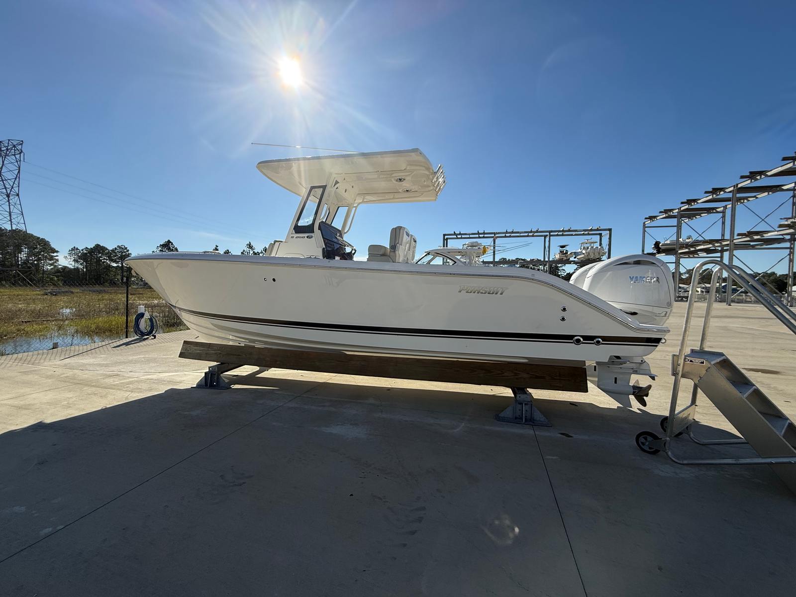 The 2025 Pursuit S 268 Center Console is a remarkable vessel that brings together power, innovation, and luxury in one stunning package. With its twin Yamaha engines, carbon helm, advanced Garmin electronics, stylish black canvas, and versatile sunshades, this boat is designed to deliver unforgettable experiences on the water. The fresh white hull and black bootstripe add a touch of elegance, while practical features like the anchor windlass system and dedicated storage make ownership a breeze.If you are searching for a Pursuit boat for sale that offers exceptional performance, comfort, and style, the Pursuit S 268 is the ultimate choice. Don’t miss your opportunity to own this extraordinary Center Console—contact your dealer today to learn more and start your next adventure on the water.