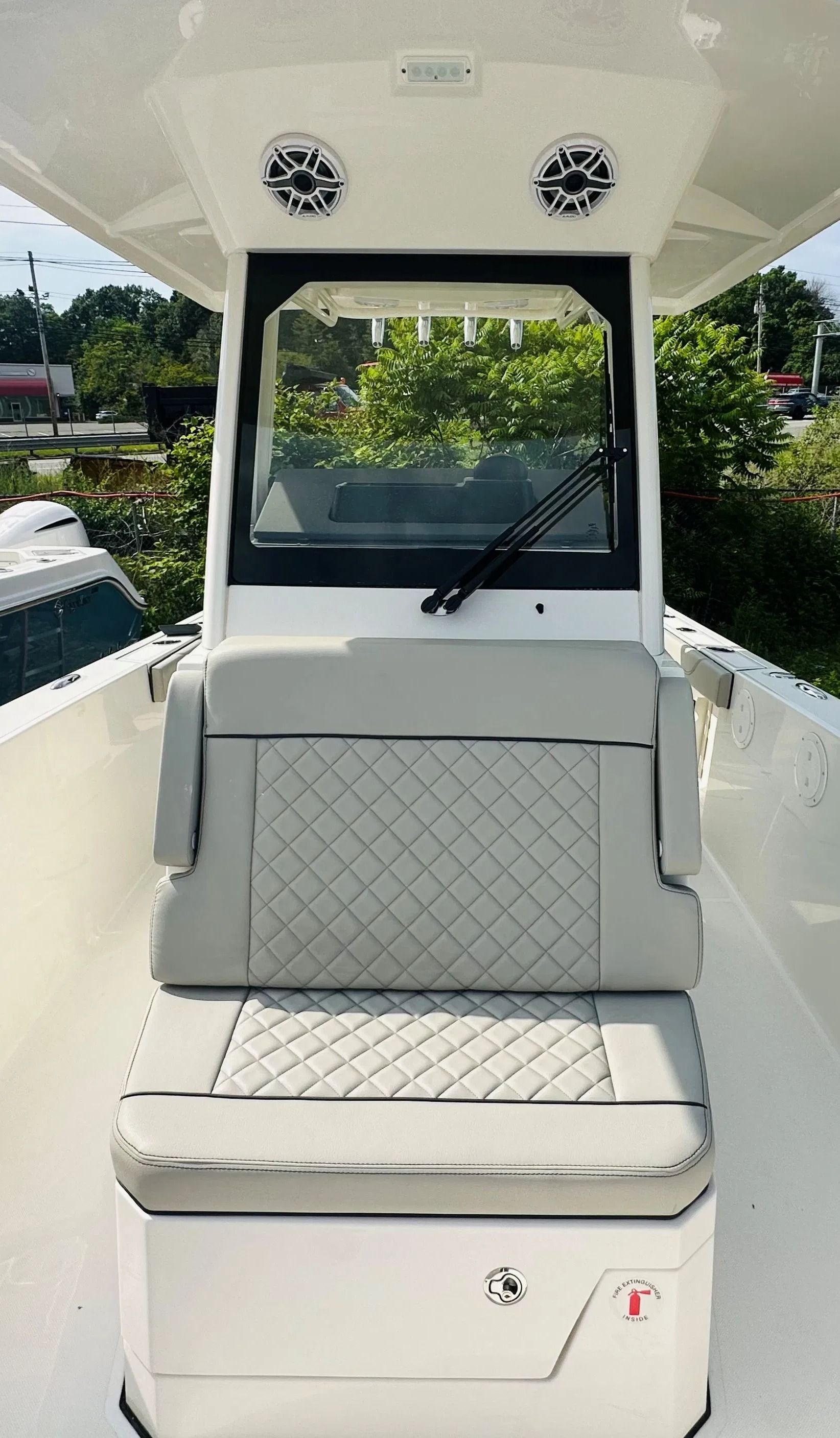 This Pursuit boat for sale is loaded with premium features designed to enhance your time on the water. The Anchor Windlass System with remote offers convenient anchoring, making it easy to secure your spot in any bay or cove. For those who love to entertain, the Bow/Cockpit Table in fiberglass provides a versatile space for dining, socializing, or simply relaxing, and it comes with dedicated storage to keep your deck uncluttered. Lighting is a highlight on the S 268, with three all-color Sea Blaze Quattro Spectrum underwater lights that create a captivating ambiance during evening cruises. Four mid-level cockpit accent lights in LED Blue add a touch of elegance, while ensuring visibility and safety. The Tranquil Sea feature further enhances the boat’s serene atmosphere, making every outing a pleasure.
