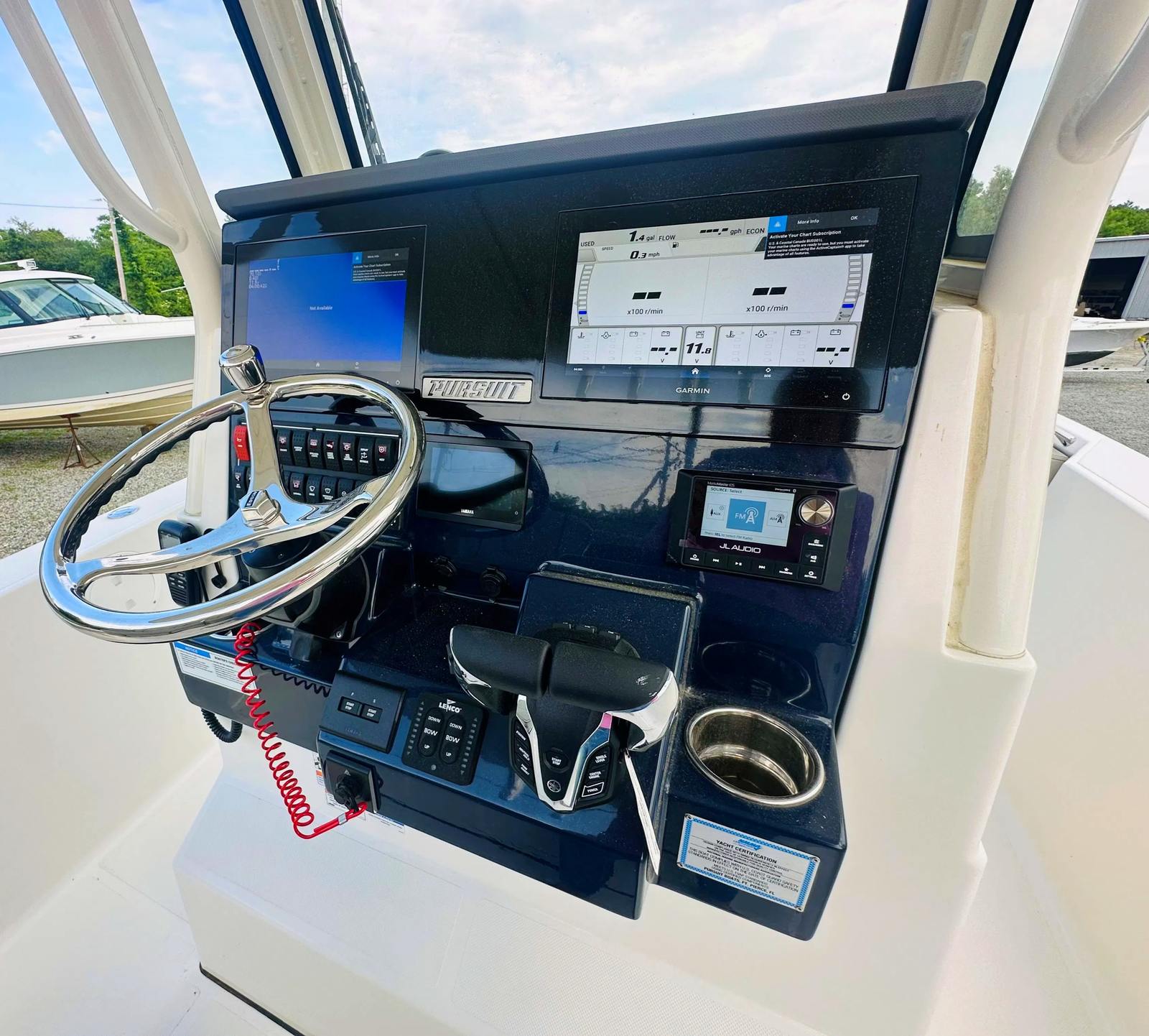 Owning the Pursuit S 268 Center Console means embracing a lifestyle of fun, relaxation, and adventure. The spacious layout is perfect for hosting family and friends, offering ample room for lounging, dining, and enjoying the scenery. The advanced helm and steering systems provide confidence and control, whether you’re navigating busy marinas or exploring open waters. The combination of stylish design and functional features ensures that every trip is comfortable and enjoyable, while the premium lighting options set the mood for unforgettable evenings on the water. With its dedicated storage solutions and easy-to-use anchor system, this boat is as practical as it is luxurious.