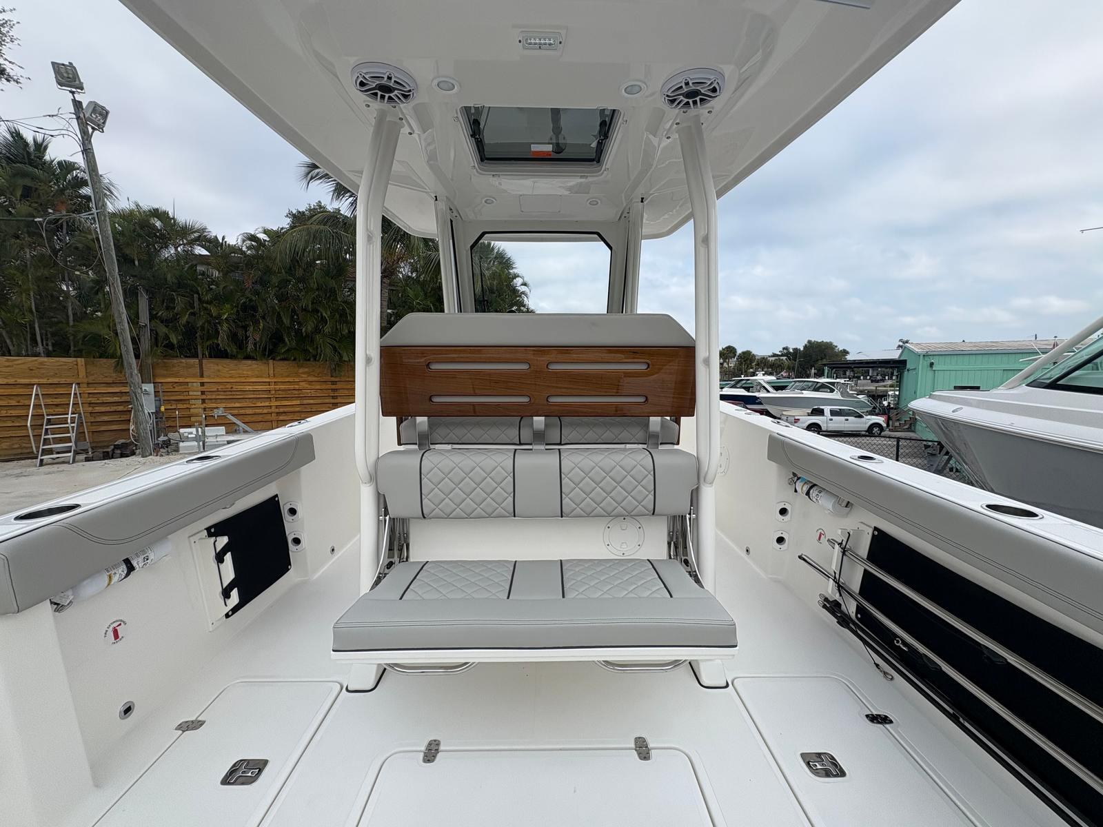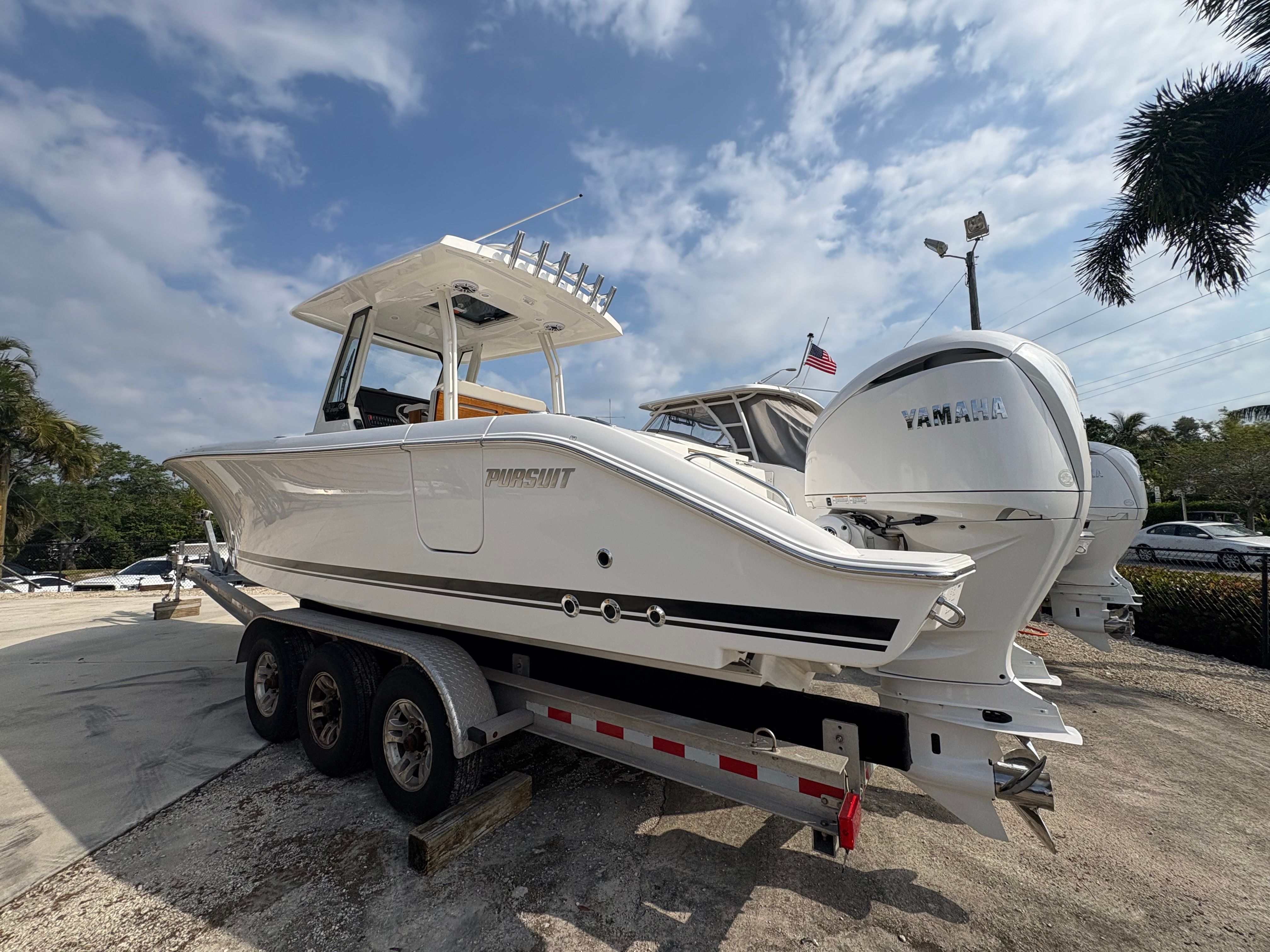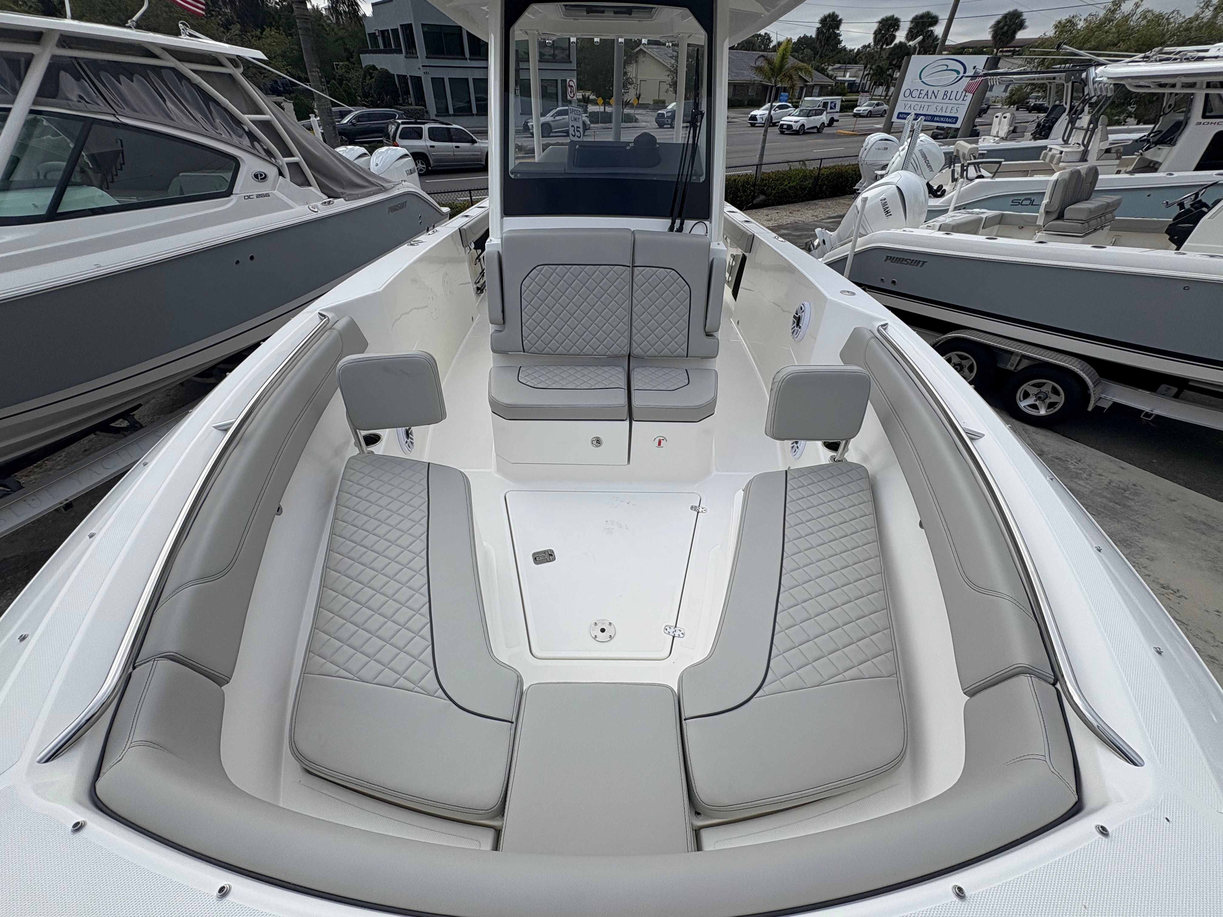 The Pursuit S 288 is designed with practicality in mind, making ownership both enjoyable and hassle-free. The hullside boarding ladder simplifies water access, whether for swimming, snorkeling, or loading gear. The bow thruster provides exceptional control when docking, making it easy to maneuver in marinas or tight spaces, even for less experienced boaters.Dockside power with a battery charger ensures that your boat’s systems are always ready to go, reducing downtime and maintenance concerns. The efficient Yamaha engines offer a balance of power and fuel economy, allowing you to spend more time on the water and less time at the fuel dock.Storage solutions throughout the boat keep your gear organized and accessible, so you can focus on enjoying your day rather than searching for equipment. The durable construction and high-quality materials used in the S 288 ensure long-lasting performance and easy upkeep, giving you peace of mind with every outing.