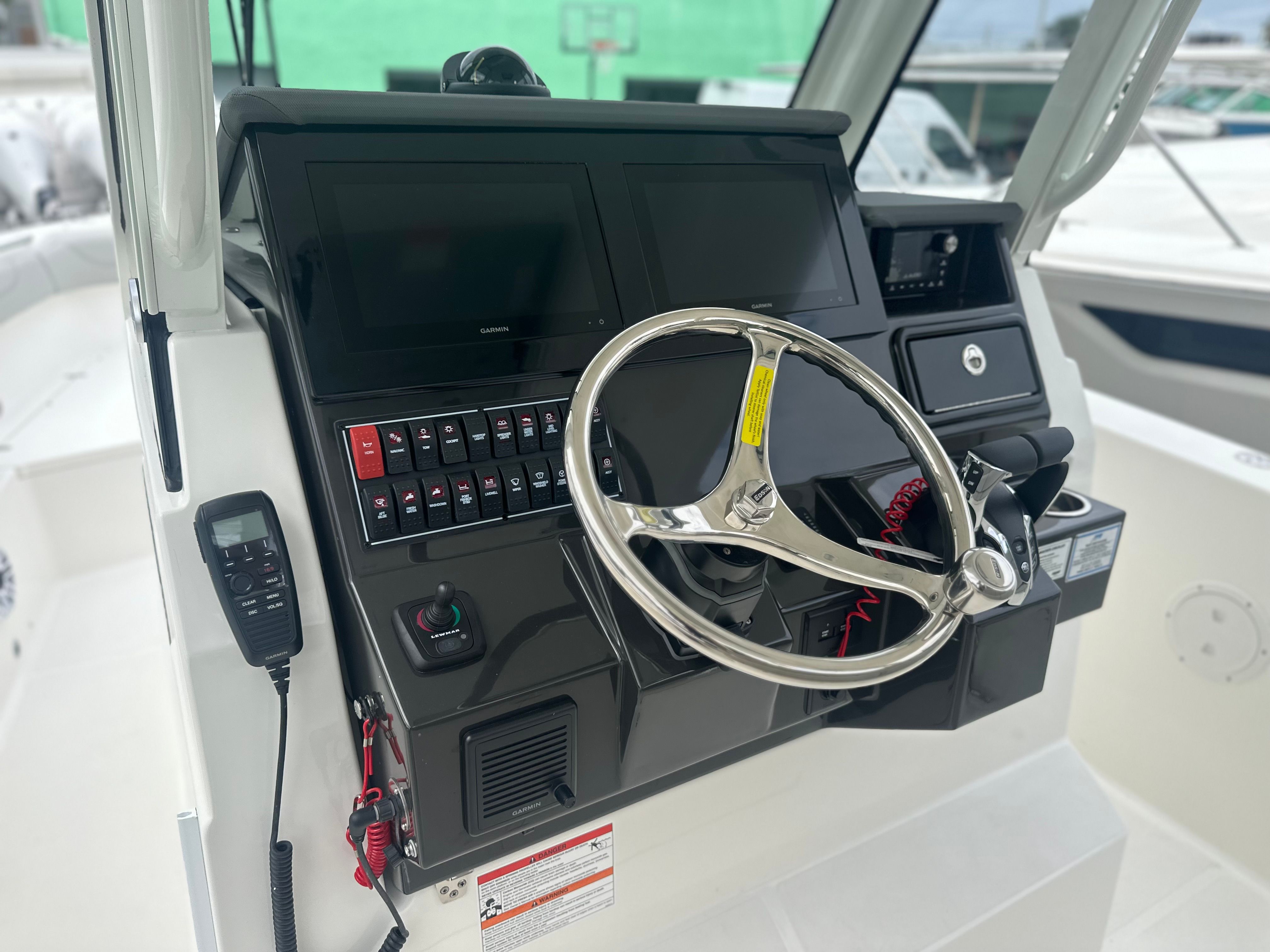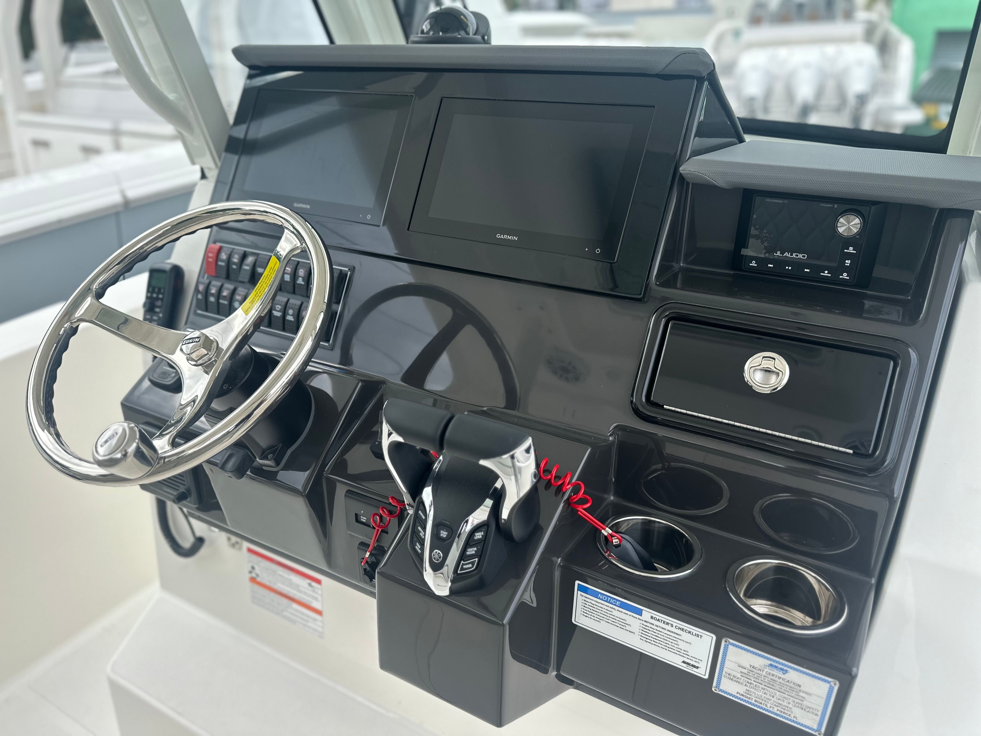 The 2026 Pursuit S 288 Center Console is a 30-foot marvel that combines modern design with cutting-edge technology. Pursuit boats are renowned for their craftsmanship, and the S 288 model exemplifies this reputation with its Fresh White hull color and Platinum Boot Stripe accented with Platinum details. The Hardtop Liner also features a Fresh White finish, while the helm and footrest are elegantly styled in Carbon, creating a sophisticated and inviting atmosphere. Whether you’re cruising along the coastline or anchored at your favorite spot, this Pursuit boat for sale offers a striking presence and unmatched comfort.