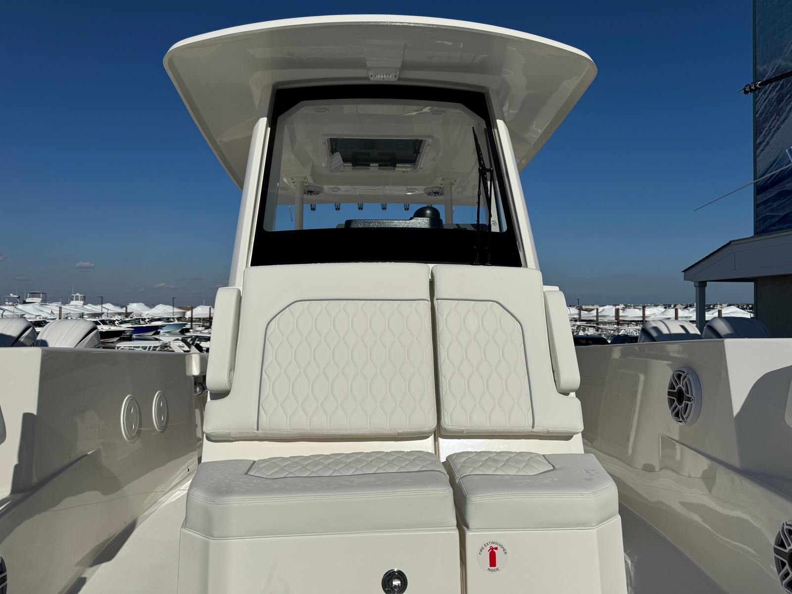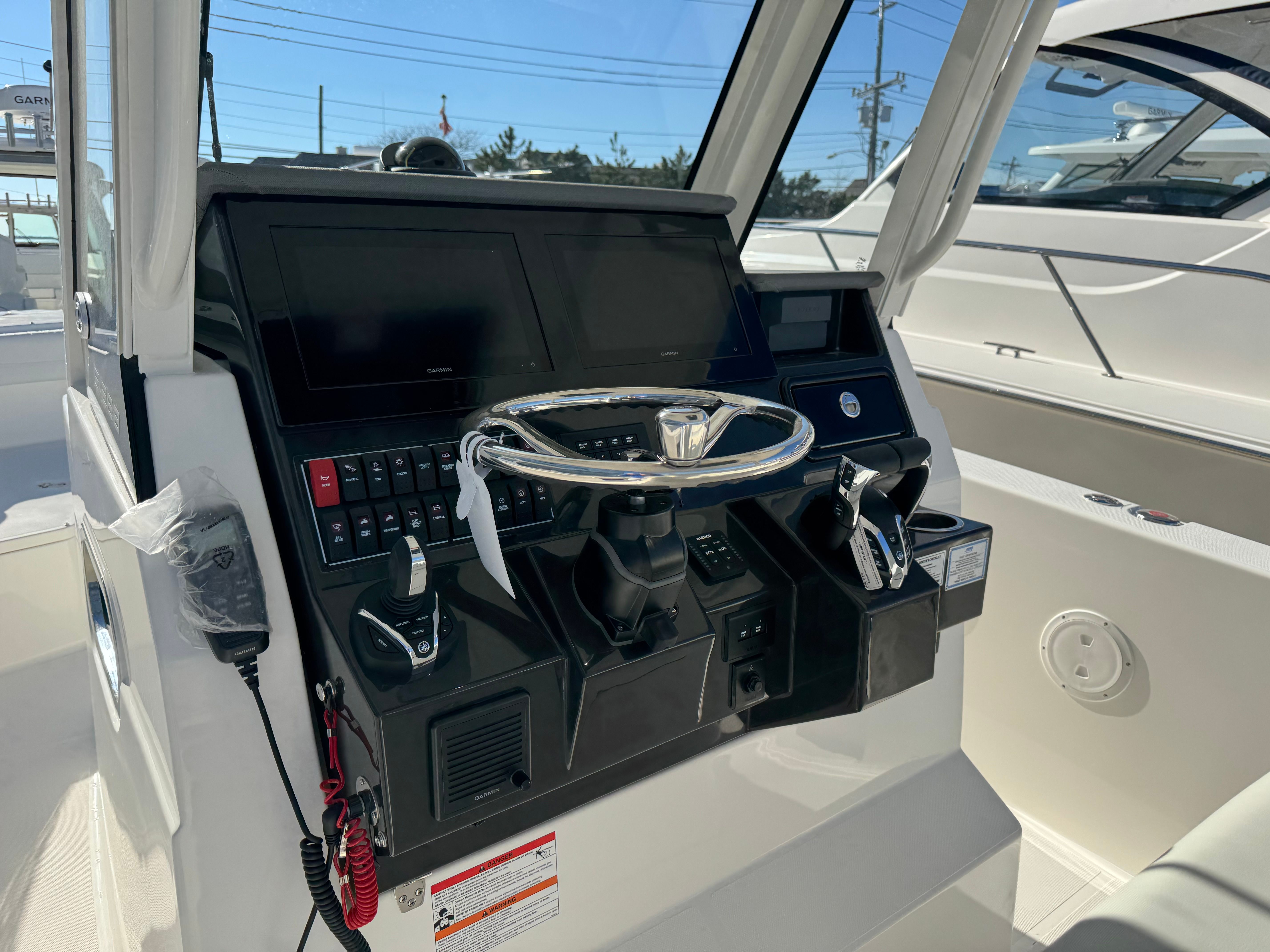 - Twin Yamaha® Digital F300 V6 Offshore (Pearlescent White) w/Integrated Digital Electric Steering (DES) and Helm Master® EX Digital Electronic Control (DEC) (does not include joystick control), Multifunction Display Interface and Manual Engine Flushing System