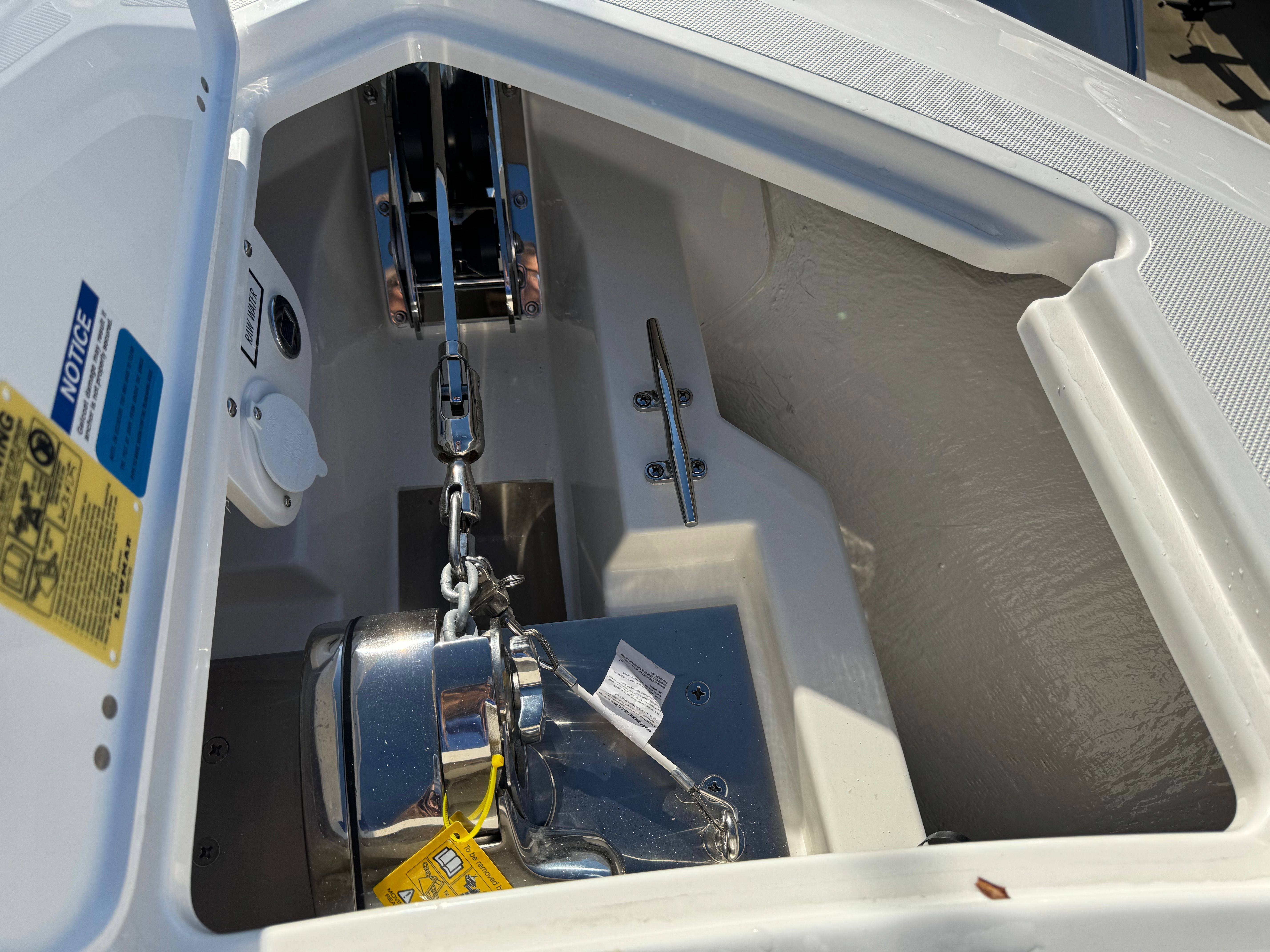 The Pursuit S 288 is loaded with special features designed to enhance your boating experience. The multifunction display interface and manual engine flushing system provide convenience and ease of maintenance, while the Garmin 2nd widescreen 12-inch display offers advanced navigation and system monitoring at your fingertips. The helm and footrest, finished in a sophisticated carbon color, add a touch of modern elegance to the cockpit.Enjoy the versatility of the bow and cockpit table, crafted from durable fiberglass and equipped with dedicated storage for easy stowage when not in use. The hardtop, with its fresh white underside, not only provides shade and protection but also features six hardtop-mounted rod holders, making this boat ideal for serious anglers. Mid-level cockpit accent lights in vibrant blue LED create a captivating ambiance for evening cruises, while the transom-mounted, pop-up ski tow opens up a world of watersports possibilities.