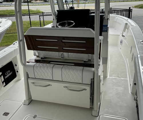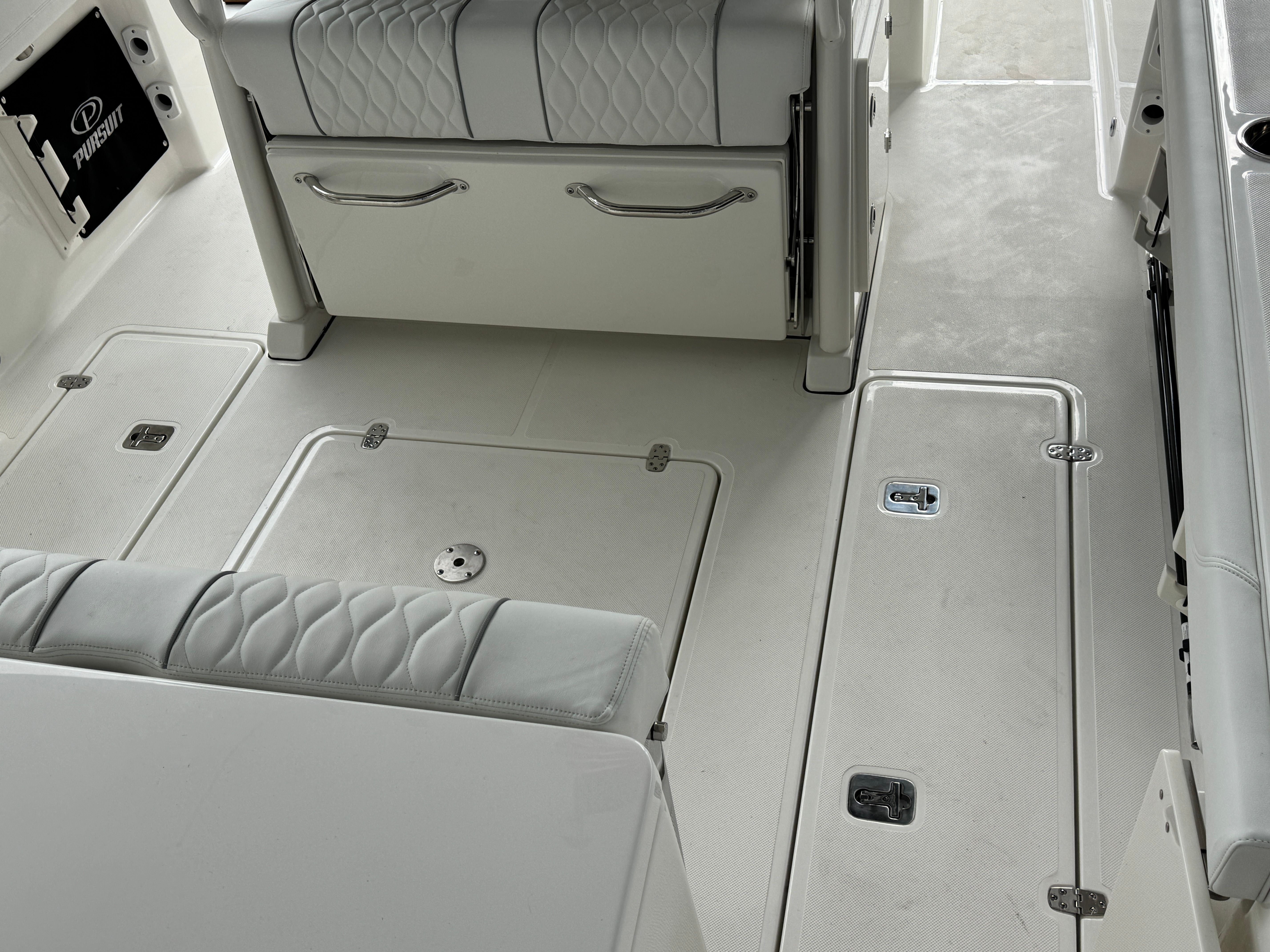 Owning the Pursuit S 288 Center Console means embracing a lifestyle of fun, relaxation, and adventure. The spacious layout is perfect for hosting family and friends, with plenty of room to stretch out, enjoy meals, or soak up the sun. The advanced helm and steering systems make piloting this boat a joy, whether you’re an experienced captain or new to boating. The hardtop rod holders and dedicated storage solutions keep your gear organized, while the sunshade and table add comfort and convenience for long days on the water. Every detail is designed to maximize your enjoyment, making this Pursuit boat for sale an ideal choice for those who value both performance and luxury.