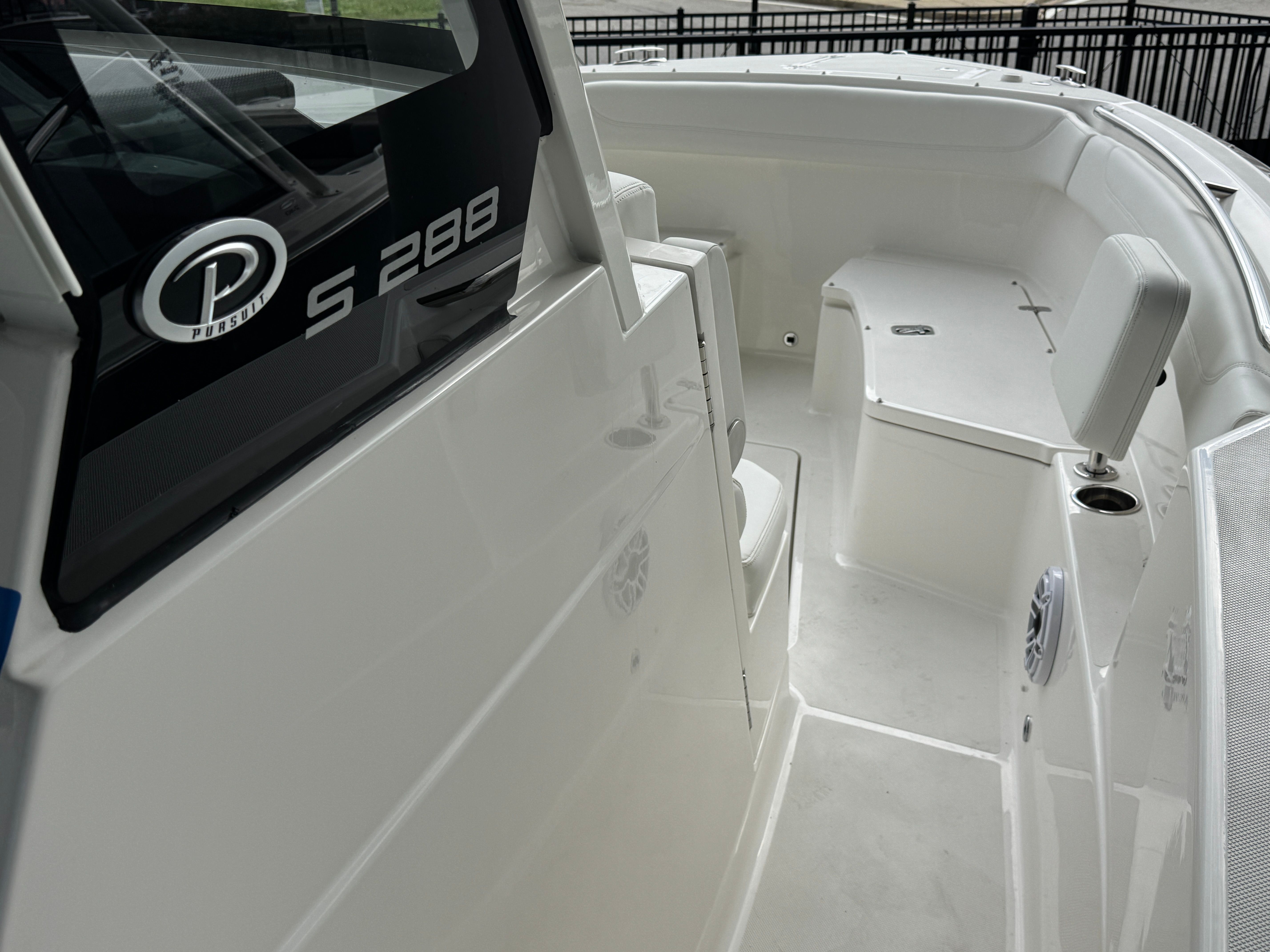 The Pursuit S 288 Center Console shines in a variety of scenarios. It’s the perfect vessel for family outings, offering a safe and comfortable environment for kids and adults alike. Anglers will appreciate the hardtop rod holders and spacious deck, making it easy to chase trophy fish or enjoy a relaxing day of casting lines. For those who love entertaining, the Bow/Cockpit Table and sunshade create an inviting space for meals, drinks, and conversation. Whether you’re planning a weekend getaway, a sunset cruise, or a day of water sports, this Pursuit boat for sale adapts to your needs and exceeds expectations.