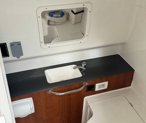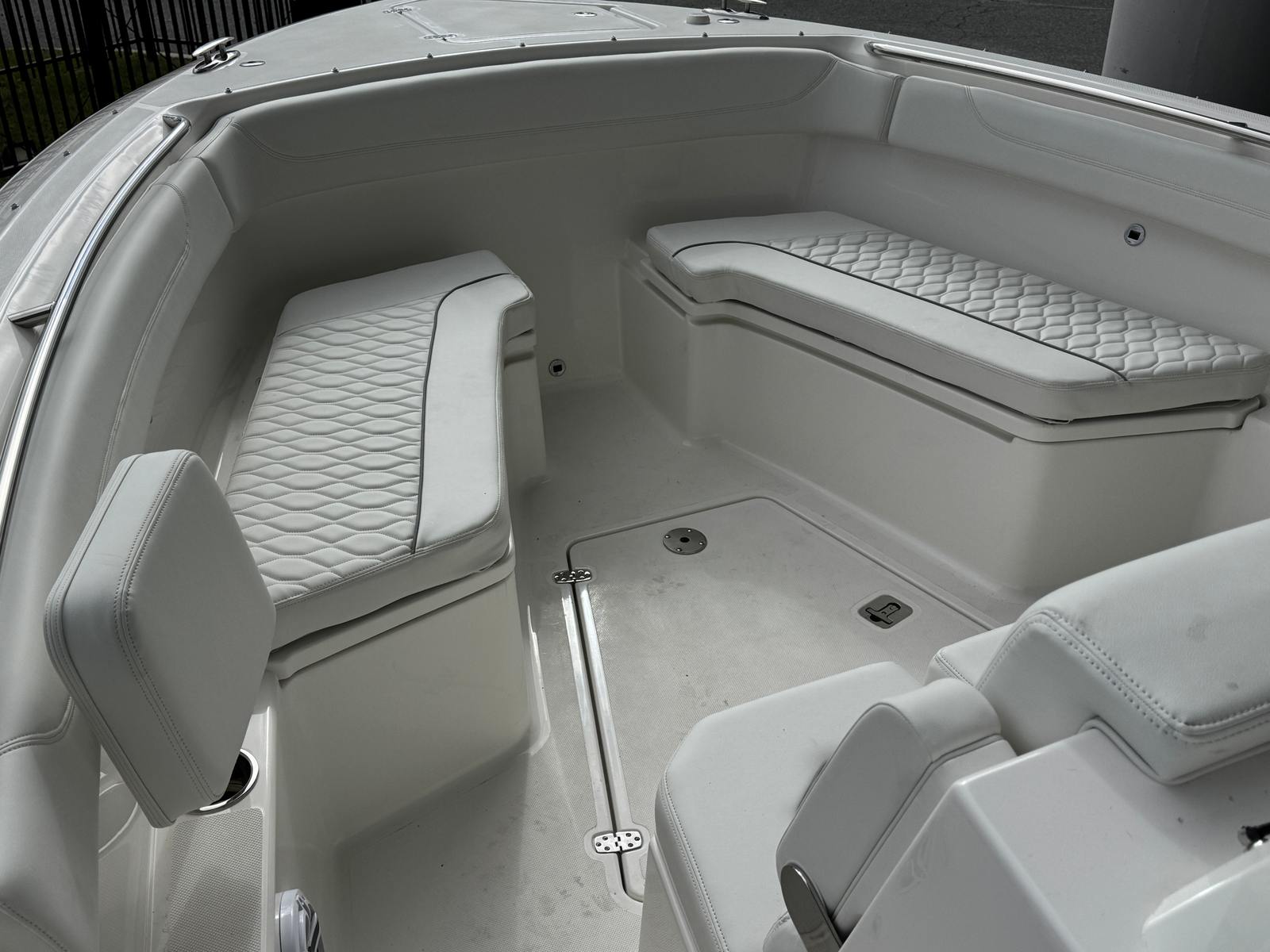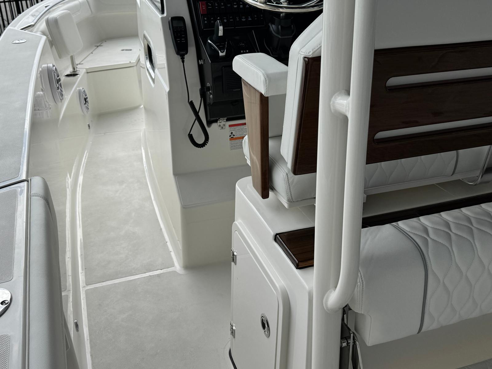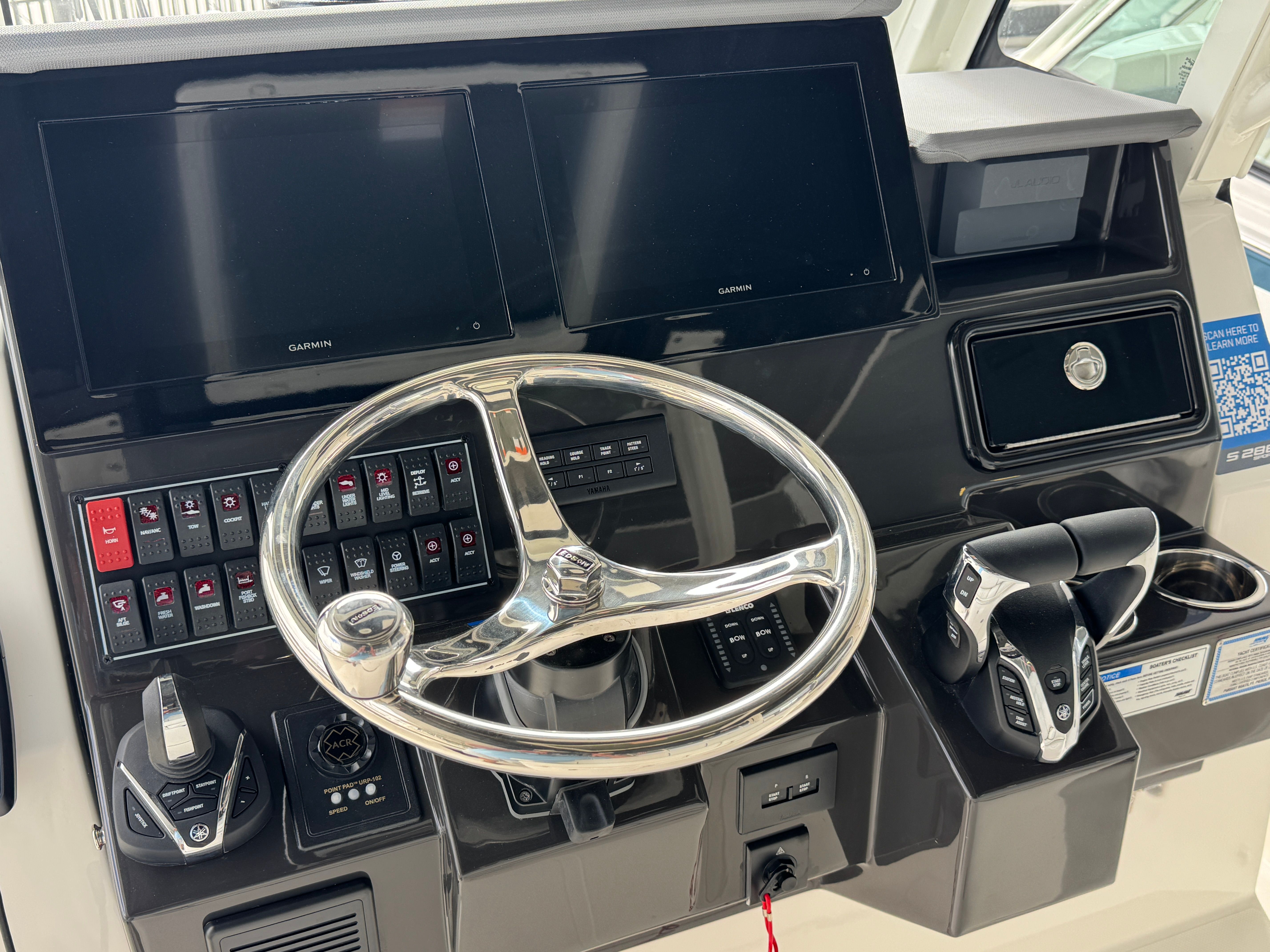 The Pursuit S 288 is as practical as it is stylish. Its 30-foot length provides ample storage for gear, supplies, and personal items, ensuring you’re always prepared for your next adventure. The integrated digital steering and joystick control make docking and maneuvering effortless, even in crowded marinas or tight spaces. Fuel efficiency is enhanced by the advanced Yamaha engines, allowing you to spend more time on the water and less time refueling. The dockside power connection supports all your electrical needs, from charging devices to powering appliances, while the manual engine flushing system simplifies maintenance and helps extend the life of your investment.