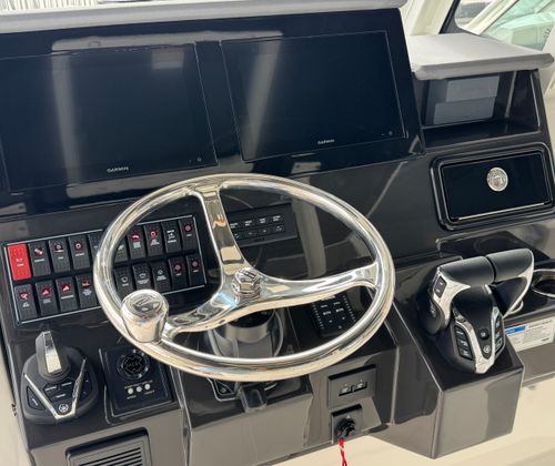 - Twin Yamaha Digital F300 V6 Offshore (Pearlescent White) w/Integrated Digital Electric Steering (DES) and Helm Master EX Digital Electronic Control (DEC) (does not include joystick control), Multifunction Display Interface and Manual Engine Flushing System