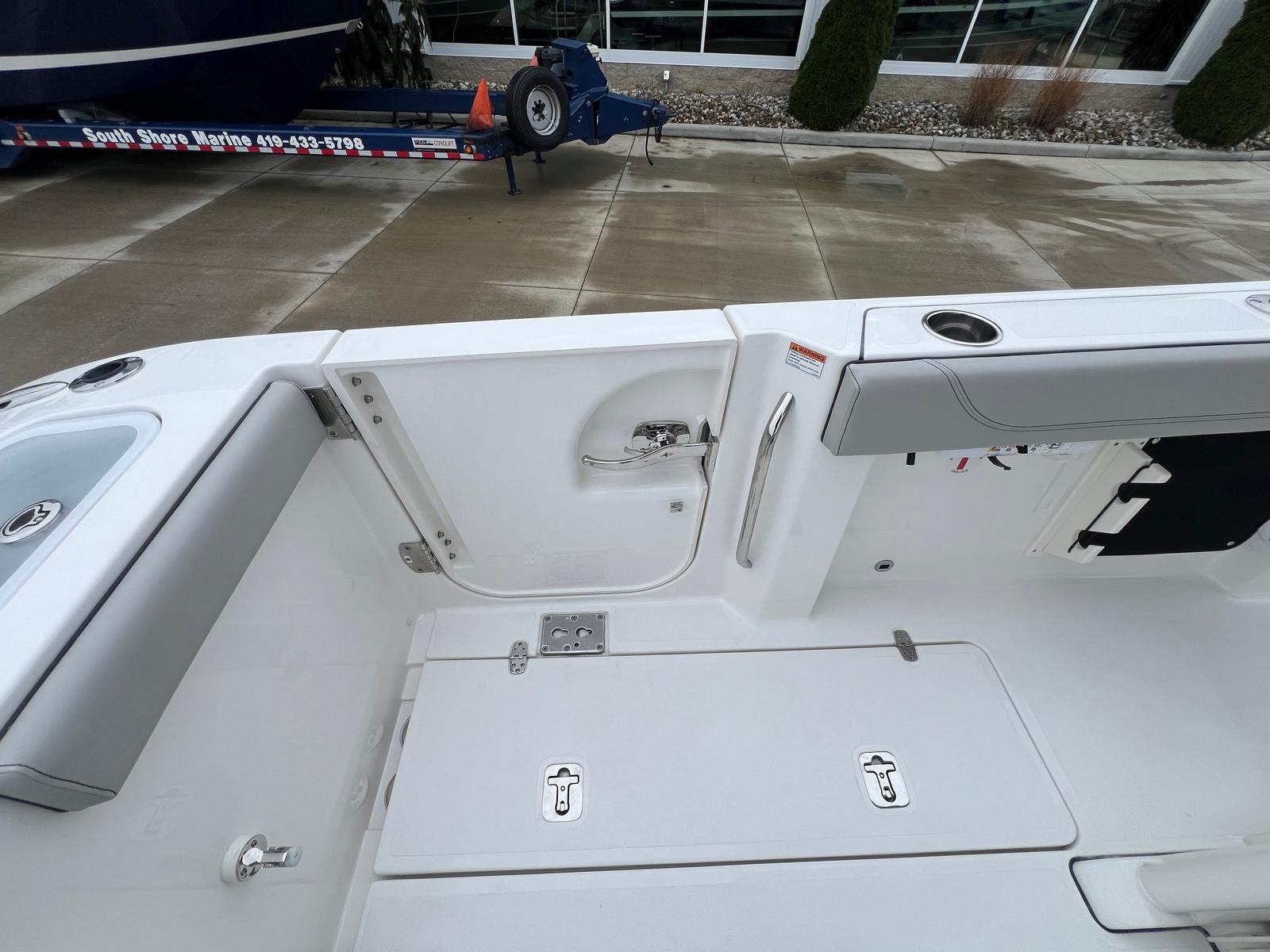 The Pursuit S 288 Center Console is as practical as it is stylish. The twin Yamaha engines offer not only impressive power but also reliable performance for long days on the water. The Yamaha Joystick Control simplifies docking, making it accessible even for less experienced boaters. Hardtop-mounted rod holders keep your fishing gear organized and within reach, while the dockside power connection ensures that your electronics and appliances stay charged and operational.The boat’s thoughtful design makes storage and organization a breeze, so you can keep your deck clutter-free and ready for action. The transom mount pop-up ski tow adds another layer of versatility, allowing you to enjoy a wide range of water activities without the need for additional equipment. With its combination of power, convenience, and innovative features, the S 288 is built to make every outing more enjoyable and hassle-free.