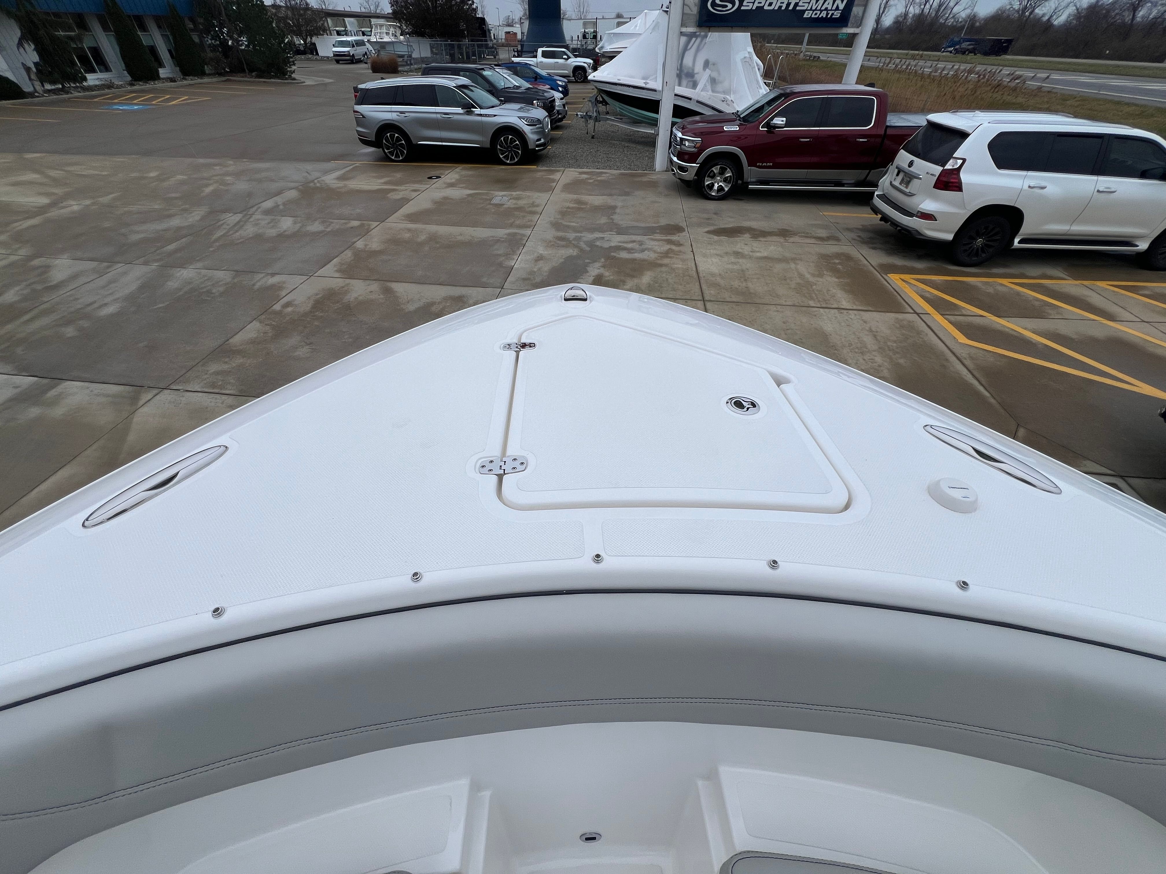 The Pursuit S 288 Center Console is loaded with premium features that enhance both functionality and comfort. The Neptune Gray hullside and hardtop underside gelcoat create a cohesive, eye-catching aesthetic, while the carbon-colored helm adds a touch of modern elegance to the command center. For anglers, hardtop-mounted rod holders provide convenient storage and quick access to gear, making it easy to switch between trolling and casting.Dockside Power (110V/60Hz 30 AMP) with cord ensures that your onboard systems remain powered and ready, whether you’re at the dock or preparing for a day on the water. Mid-level cockpit accent lights in LED blue create a vibrant, inviting atmosphere for evening cruises or late-night fishing sessions. The ski tow, featuring a transom mount pop-up design, adds versatility for watersports enthusiasts, allowing you to transition seamlessly from fishing to wakeboarding or tubing.