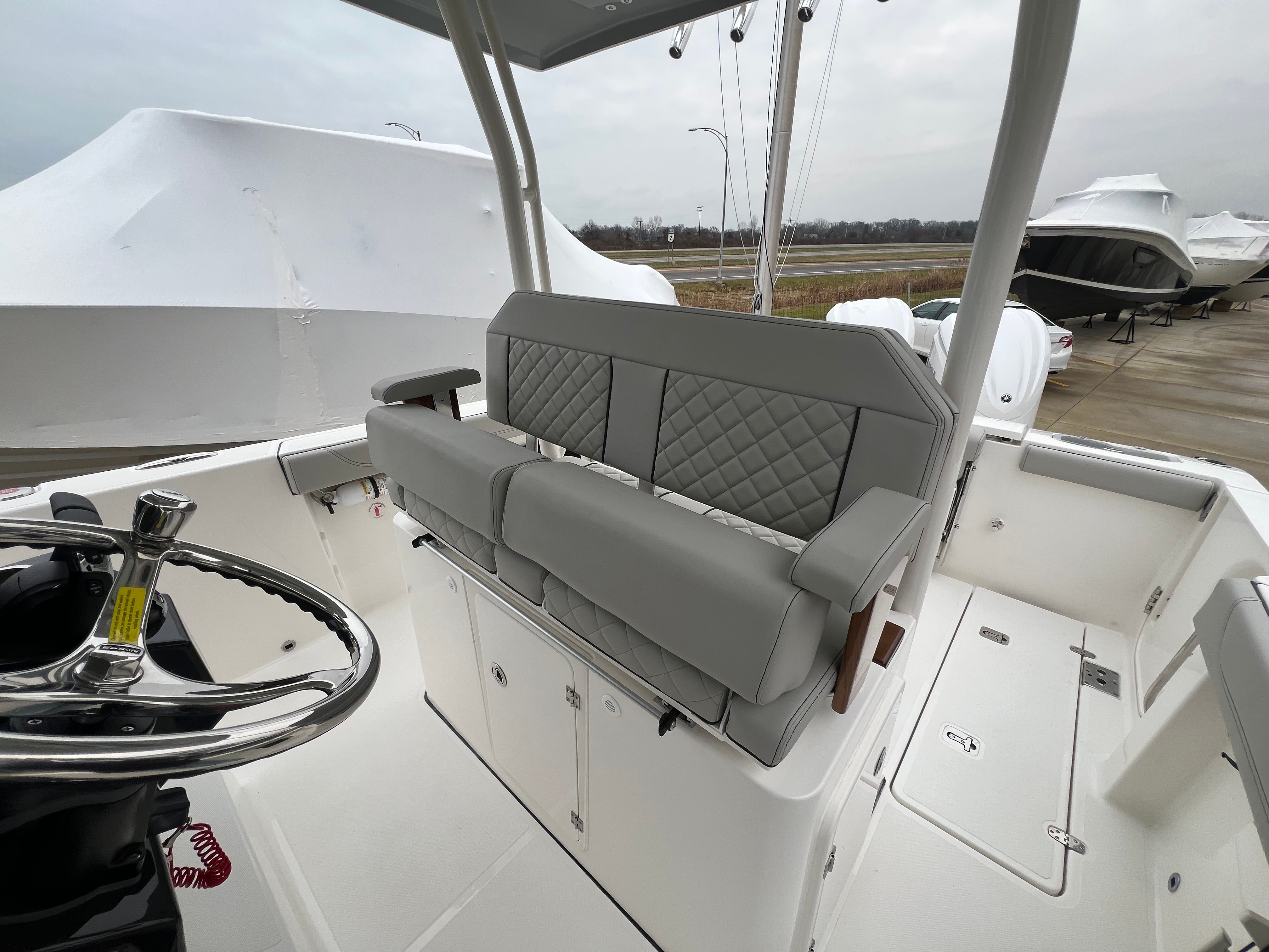 The 2025 Pursuit S 288 Center Console stands out as a premier choice in its class, boasting a sleek 30-foot length that offers ample space for both relaxation and activity. As a new addition to the Pursuit lineup, this boat showcases the brand’s commitment to quality craftsmanship and attention to detail. The Neptune Gray hullside, complemented by a black boot stripe and a hardtop underside gelcoat in matching Neptune Gray, gives the S 288 a sophisticated, modern look that is sure to turn heads at any marina or on open water.