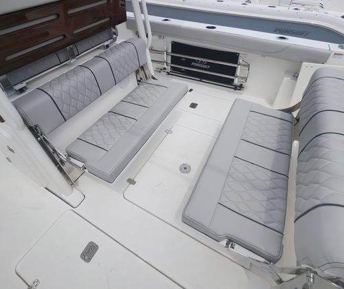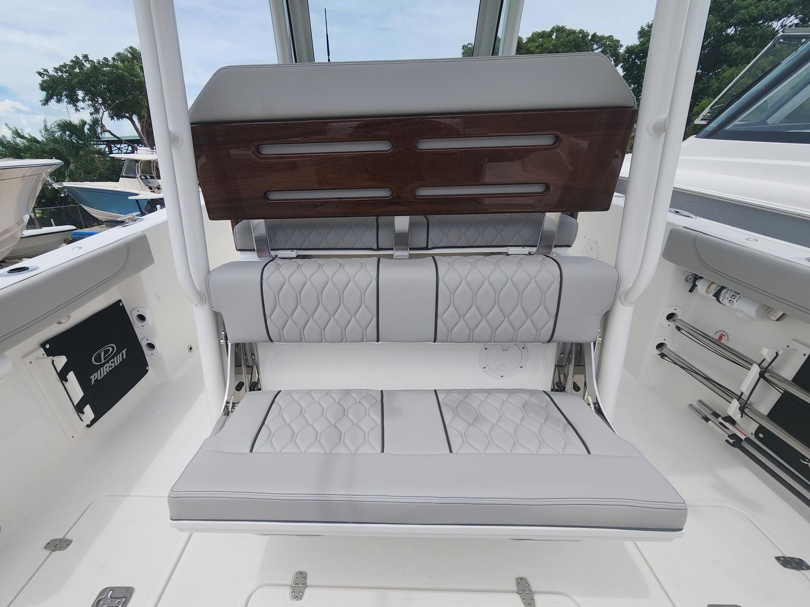 The Pursuit S 288 is loaded with features that elevate your boating experience. The helm and footrest are finished in a stylish Carbon color, creating a modern and comfortable command center for the captain. The hardtop liner matches the Fresh White hull, enhancing the boat’s cohesive and elegant aesthetic. A hullside boarding door ladder offers convenient access for swimmers, divers, or anyone boarding from the dock, while the 110V/60HZ dockside power with battery charger ensures your onboard systems stay powered up and ready for action.For those who love to enjoy the water after sunset, the S 288 is equipped with three all color spectrum underwater lights. These lights not only add a dramatic visual effect but also enhance safety and visibility during evening outings. The absence of a bow thruster is offset by the intuitive joystick system, which provides precise control for docking and close-quarters maneuvering.