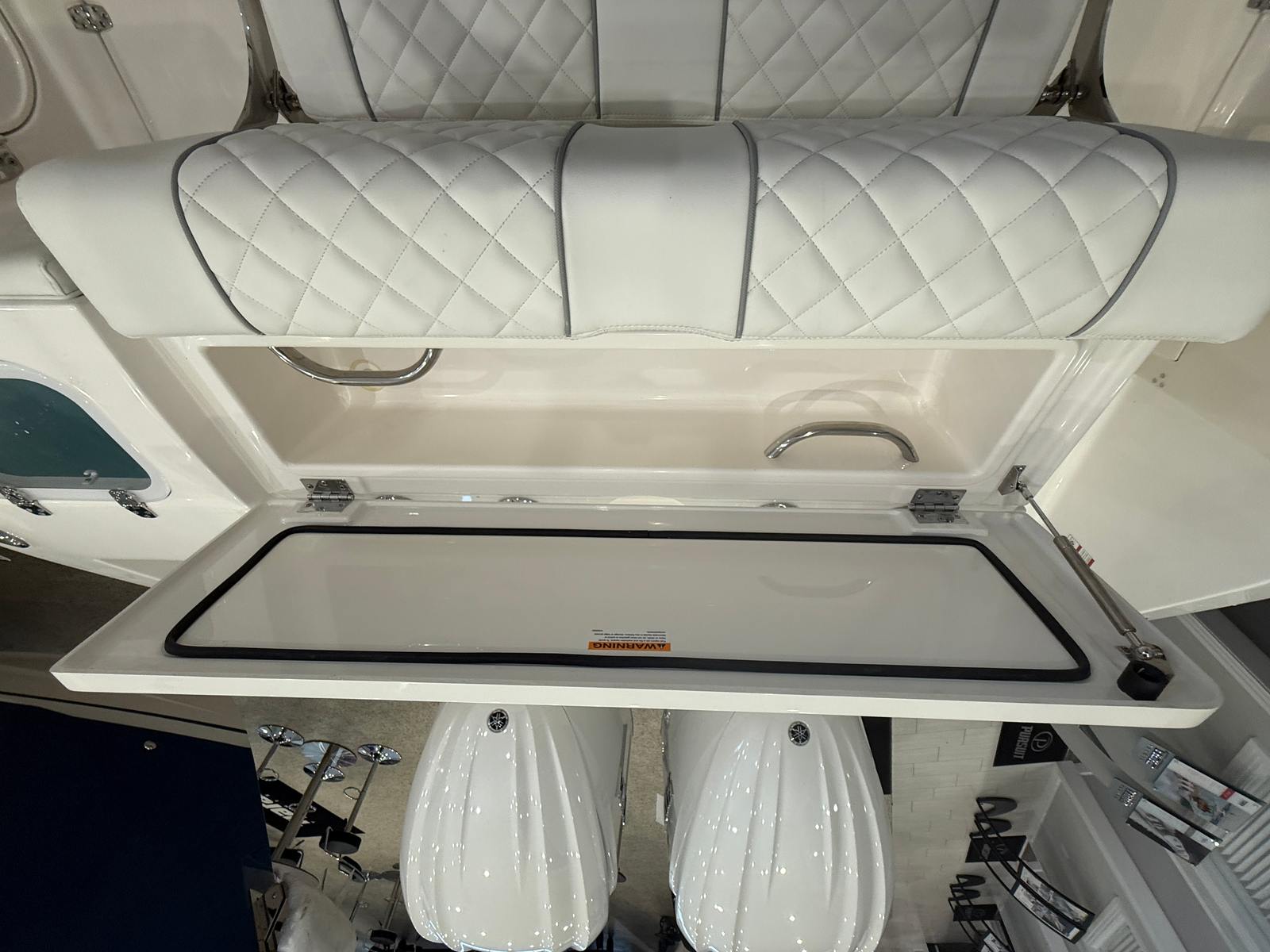 The Pursuit S 288 is packed with premium features designed to enhance your boating lifestyle. The twin Yamaha F300XSB2 engines are complemented by a joystick control system, allowing for precise handling and stress-free docking. The hull’s Sea Mist color and Platinum boot stripe with accent add a touch of elegance, while the carbon helm and footrest provide a modern, sporty feel at the helm station. The hardtop liner in Sea Mist not only looks fantastic but also offers protection from the elements, ensuring comfort during long days on the water.For added convenience, the S 288 is equipped with 110V/60HZ dockside power and a battery charger, making it easy to keep your electronics and onboard systems powered up. The helm control hardtop-mounted LED spotlight enhances visibility during nighttime excursions, adding an extra layer of safety and functionality. The white exterior sport upholstery is both stylish and durable, designed to withstand the rigors of marine environments while providing a comfortable seating experience for you and your guests.