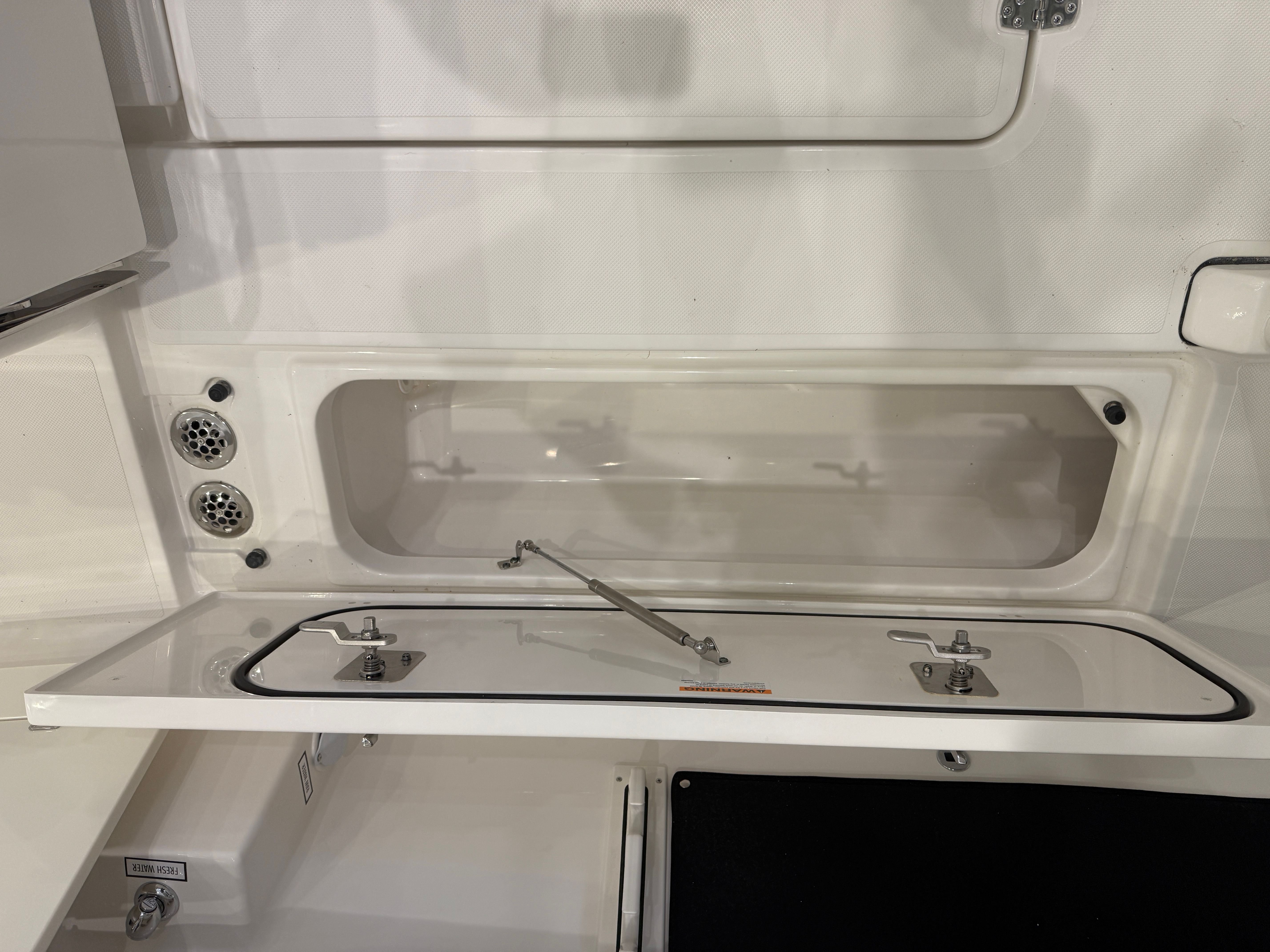Practicality meets style in the Pursuit S 288. The boat’s generous storage options make it easy to stow fishing gear, water toys, and personal items, keeping the deck clutter-free and organized. The hardtop provides shade and protection from the sun, while the LED spotlight ensures safe navigation after dark. The 110V/60HZ dockside power and battery charger simplify maintenance and keep your onboard systems running smoothly, whether you’re at the dock or anchored in a secluded cove.The joystick control system is a game-changer for boaters of all skill levels, making docking and close-quarters maneuvering effortless. This feature, combined with the boat’s agile handling and powerful engines, ensures you can explore new destinations with confidence and ease. The Pursuit S 288’s thoughtful design makes it an ideal choice for those who value both performance and convenience in their boating experience.