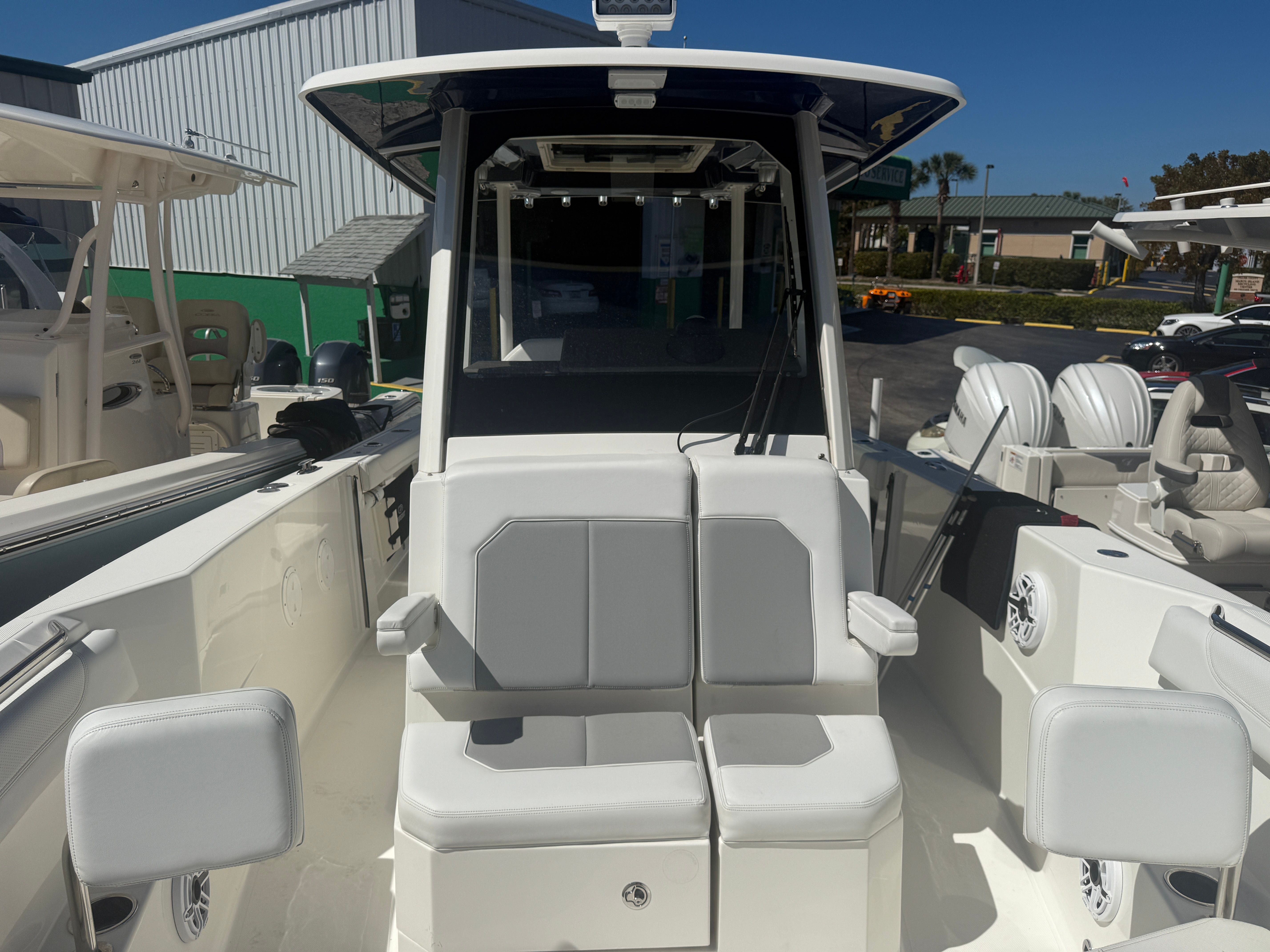 Features and Specifications: The Pursuit 288 S Center Console boat for sale is packed with features that elevate your boating experience. At 30 feet in length, it offers generous deck space for fishing, lounging, and entertaining. The Center Console layout provides unobstructed access around the boat, making it ideal for anglers who need freedom of movement and families who appreciate open, social spaces. The twin-engine configuration ensures powerful acceleration and reliable performance, while the modern helm station is designed for intuitive control and easy navigation. Every detail of the Pursuit 288 S reflects Pursuit’s commitment to quality, from its durable construction to its stylish finishes.