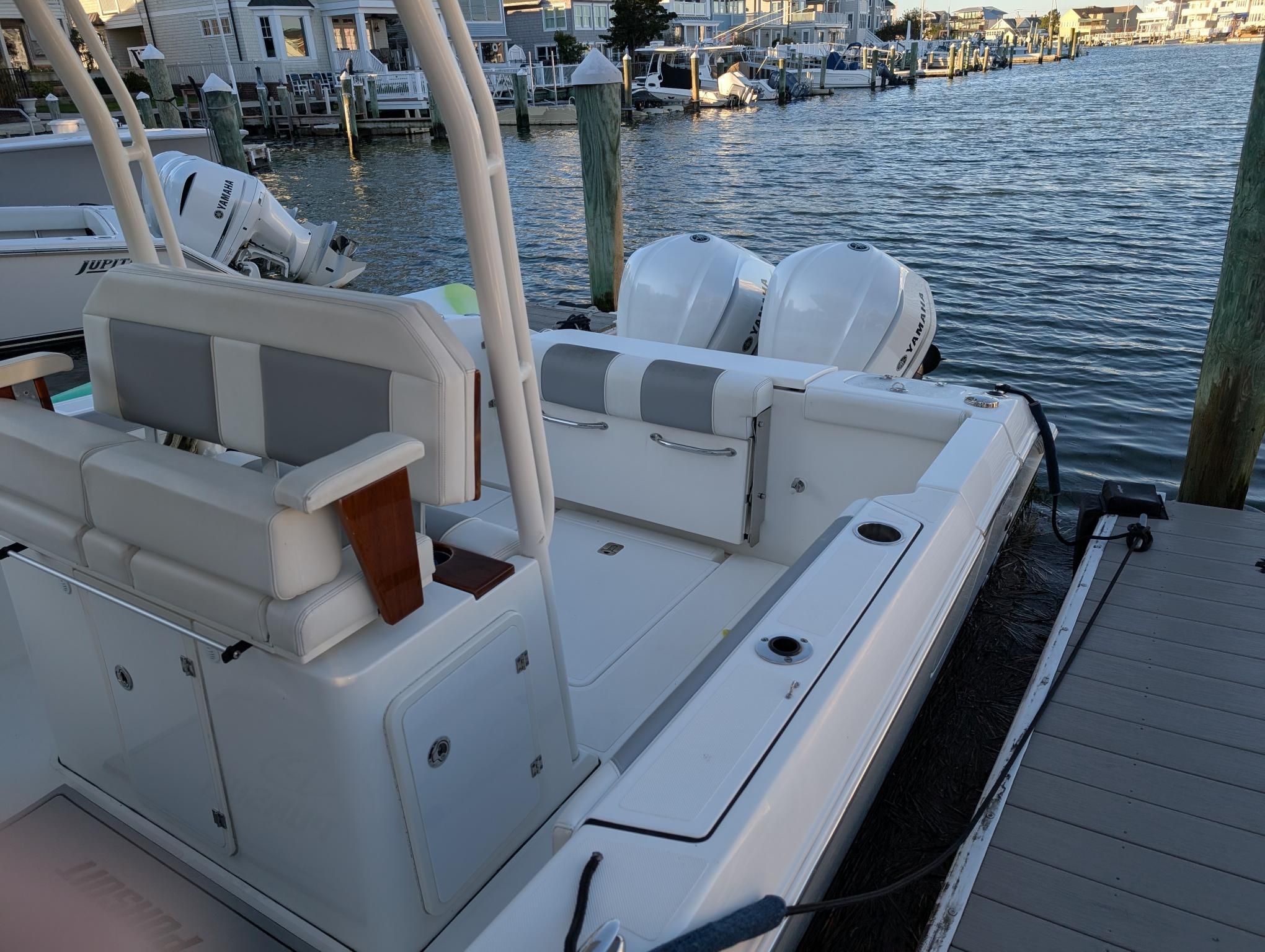 The Pursuit S 288 is packed with features that enhance both functionality and enjoyment on the water. Its center console layout offers ample space for movement, making it easy to transition from fishing to socializing. The 30-foot length provides generous deck space, allowing for comfortable seating and plenty of room for gear. The helm is thoughtfully designed for intuitive control, while the spacious cockpit is perfect for entertaining guests or preparing for a day of fishing.This center console boat for sale is built with quality materials and attention to detail, ensuring durability and a premium feel throughout. The Pursuit S 288’s design maximizes both storage and accessibility, making it easy to stow fishing equipment, water toys, and personal items. The dual engines not only boost performance but also offer peace of mind with redundancy and enhanced maneuverability.