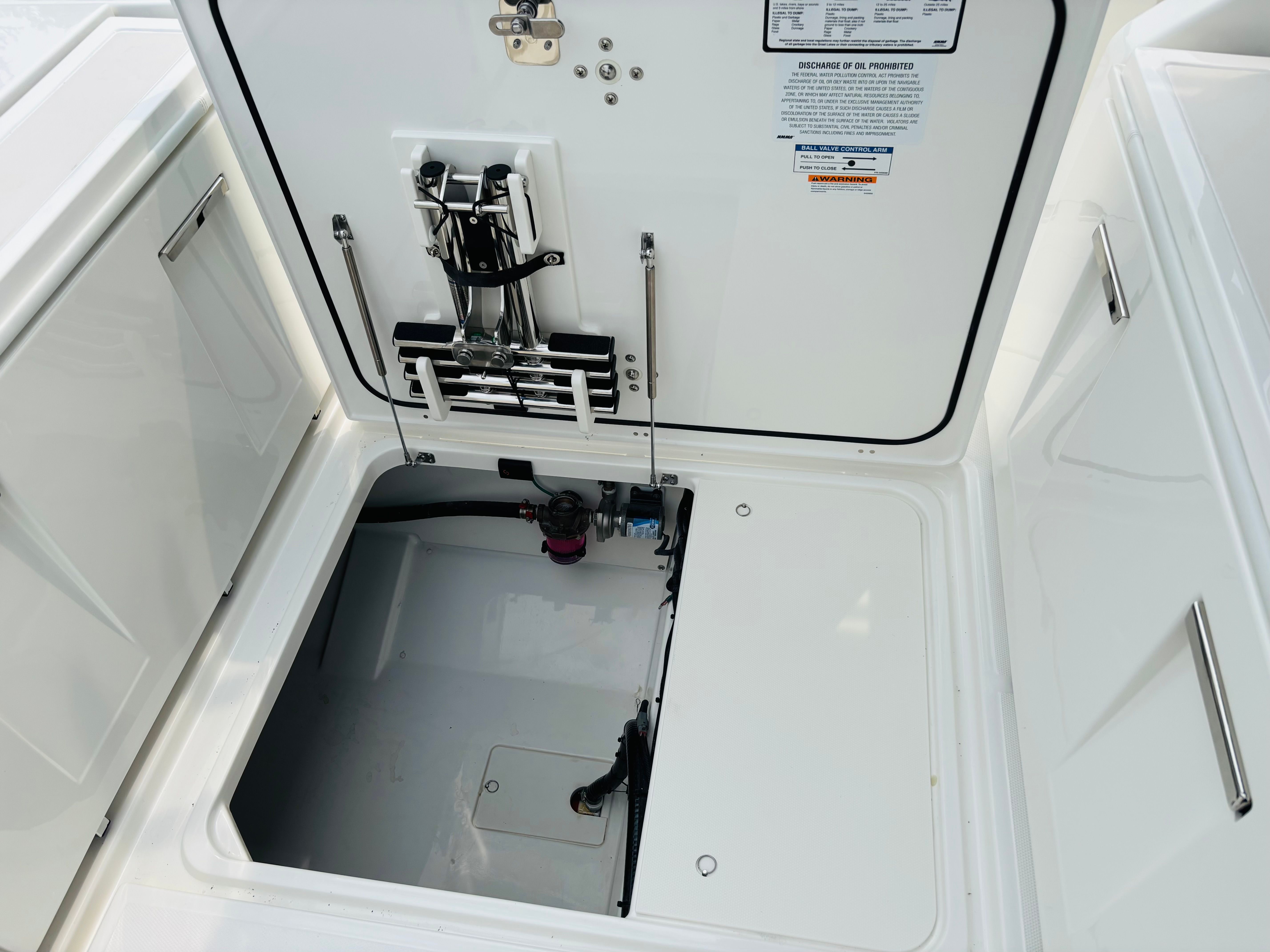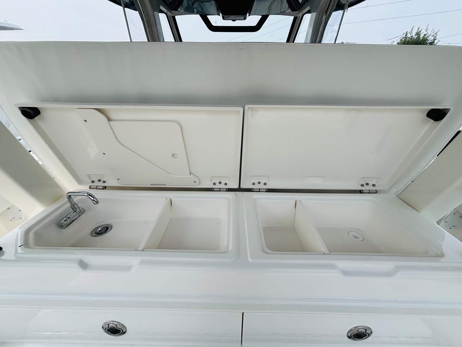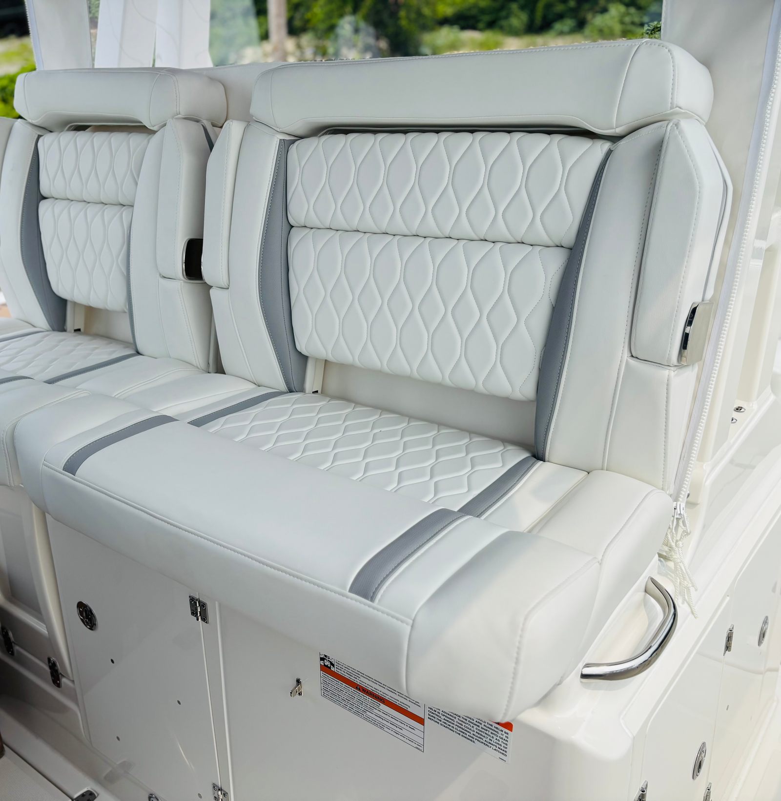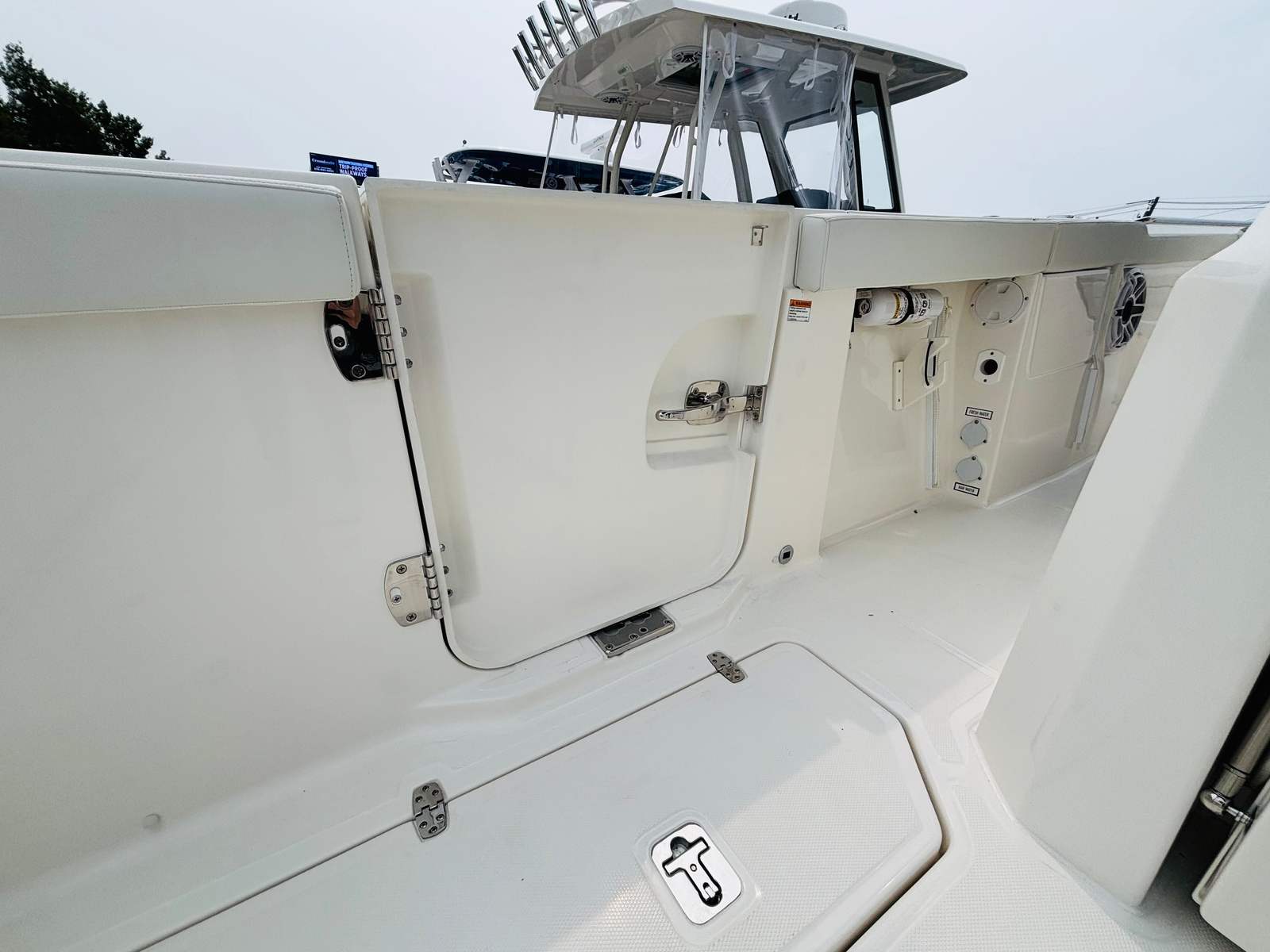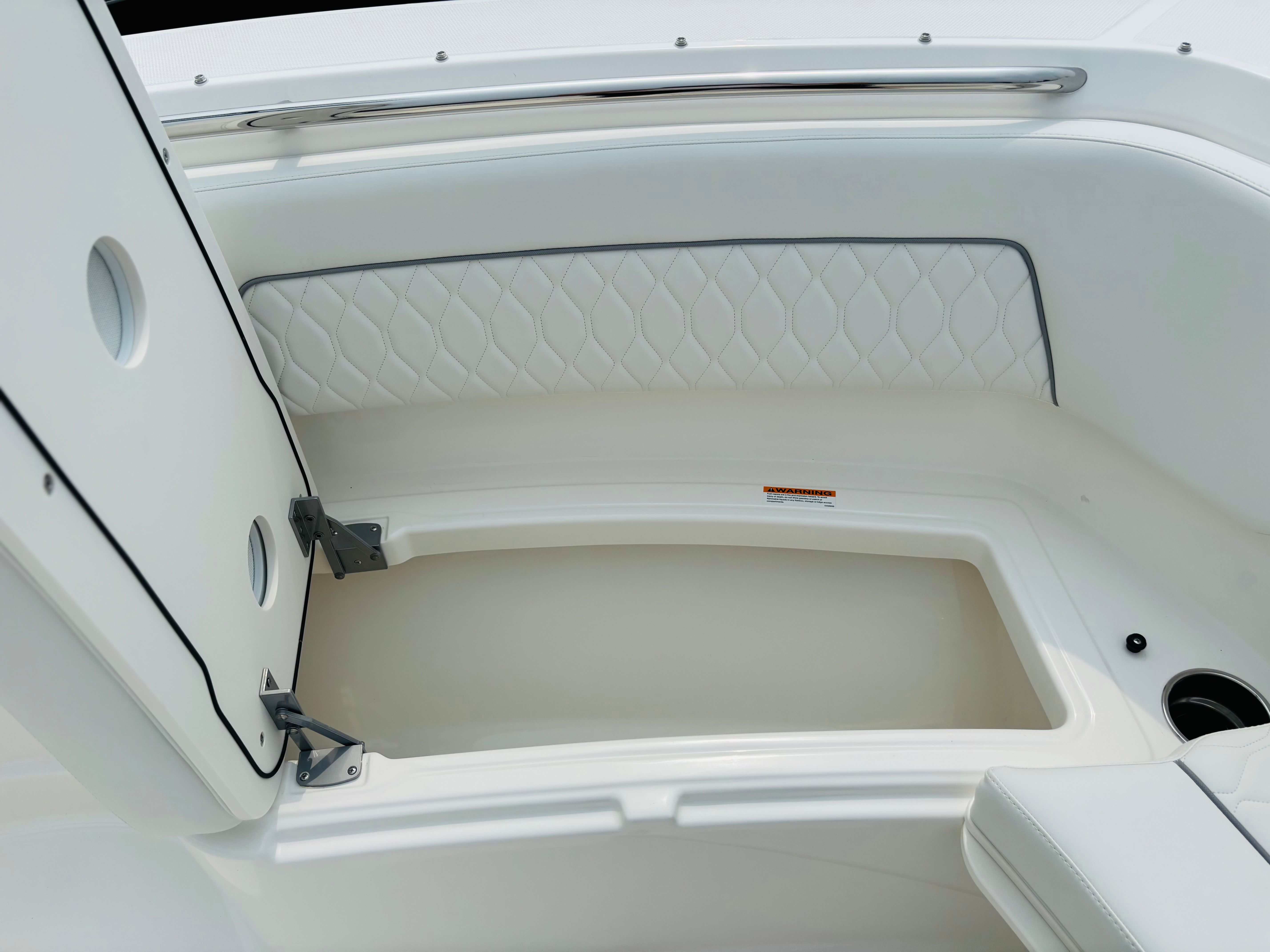 The Pursuit S 328 is packed with premium features designed to enhance your time on the water. The Multifunction Display Interface puts essential information and controls at your fingertips, streamlining navigation and system management. The hull’s Flag Blue finish, complemented by a Quartz Gray helm and hardtop liner, creates a sophisticated aesthetic that’s both modern and timeless. Inside, the Tranquil Sea interior sets a relaxing tone, while the upgraded upholstery in white and gray adds a touch of elegance and comfort.For those who appreciate convenience and luxury, the cockpit refrigerator with 12v temperature control replaces the standard tackle storage, offering a practical solution for keeping refreshments cool during long days on the water. The ACR RCL-100 LED spotlight with remote control at the helm enhances safety and visibility during nighttime excursions, while the three Sea Blaze Quattro Spectrum underwater lights provide vibrant, customizable illumination for evening entertainment and ambiance.
