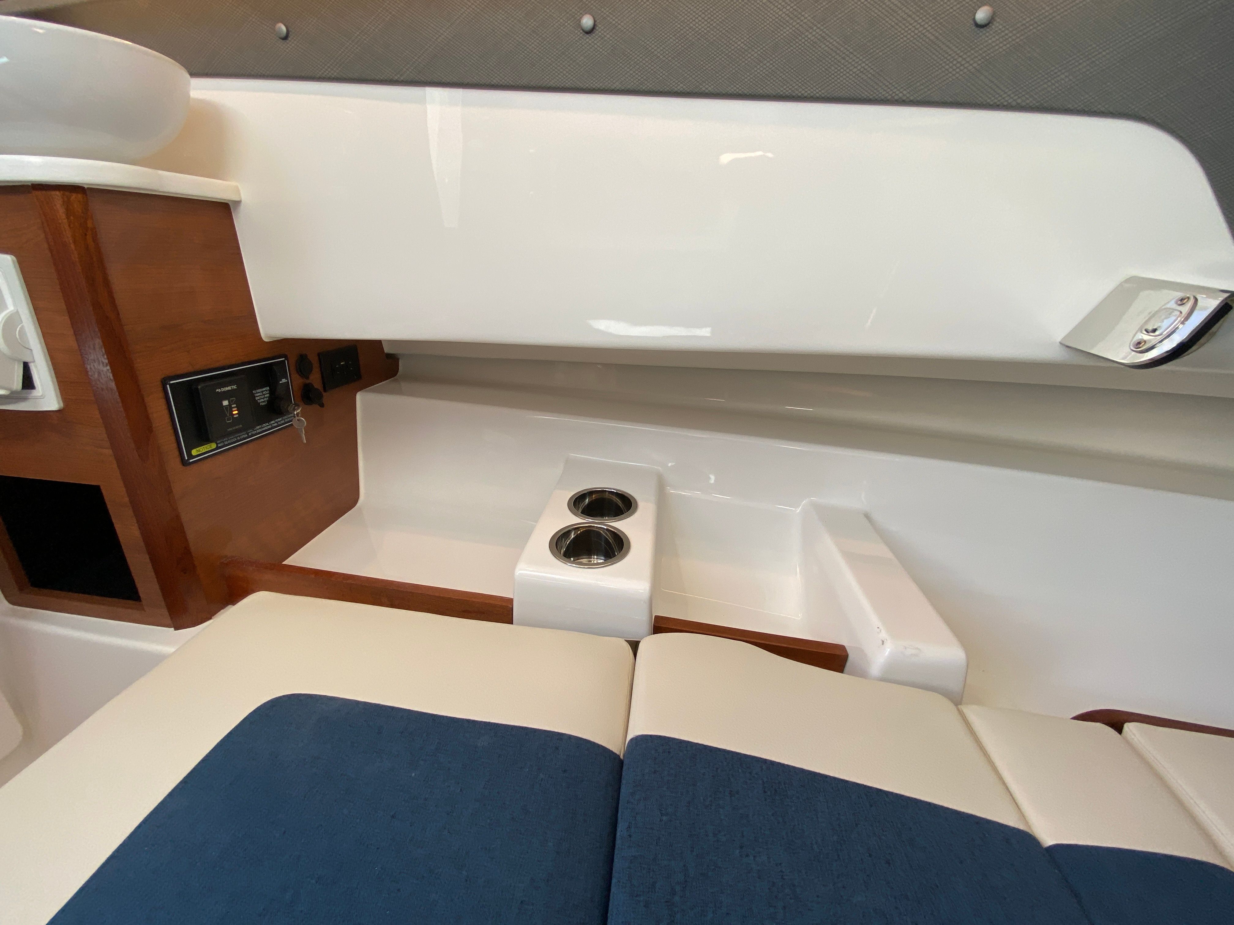 The Pursuit S 328 is designed with practicality in mind, making ownership easy and enjoyable. The joystick control system simplifies docking, allowing you to maneuver effortlessly in tight spaces or busy marinas. The ample rod holders and spacious cockpit make it a dream for anglers, while the refrigerator and air conditioning add comfort for longer trips. The generator ensures you have reliable power for overnight stays or extended outings, and the retractable sunshade provides customizable protection from the elements.Storage solutions throughout the boat keep your gear organized and accessible, while the robust twin Yamaha engines offer excellent fuel efficiency for a vessel of this size and power. The Pursuit S 328’s thoughtful design means you can spend more time enjoying the water and less time worrying about logistics.