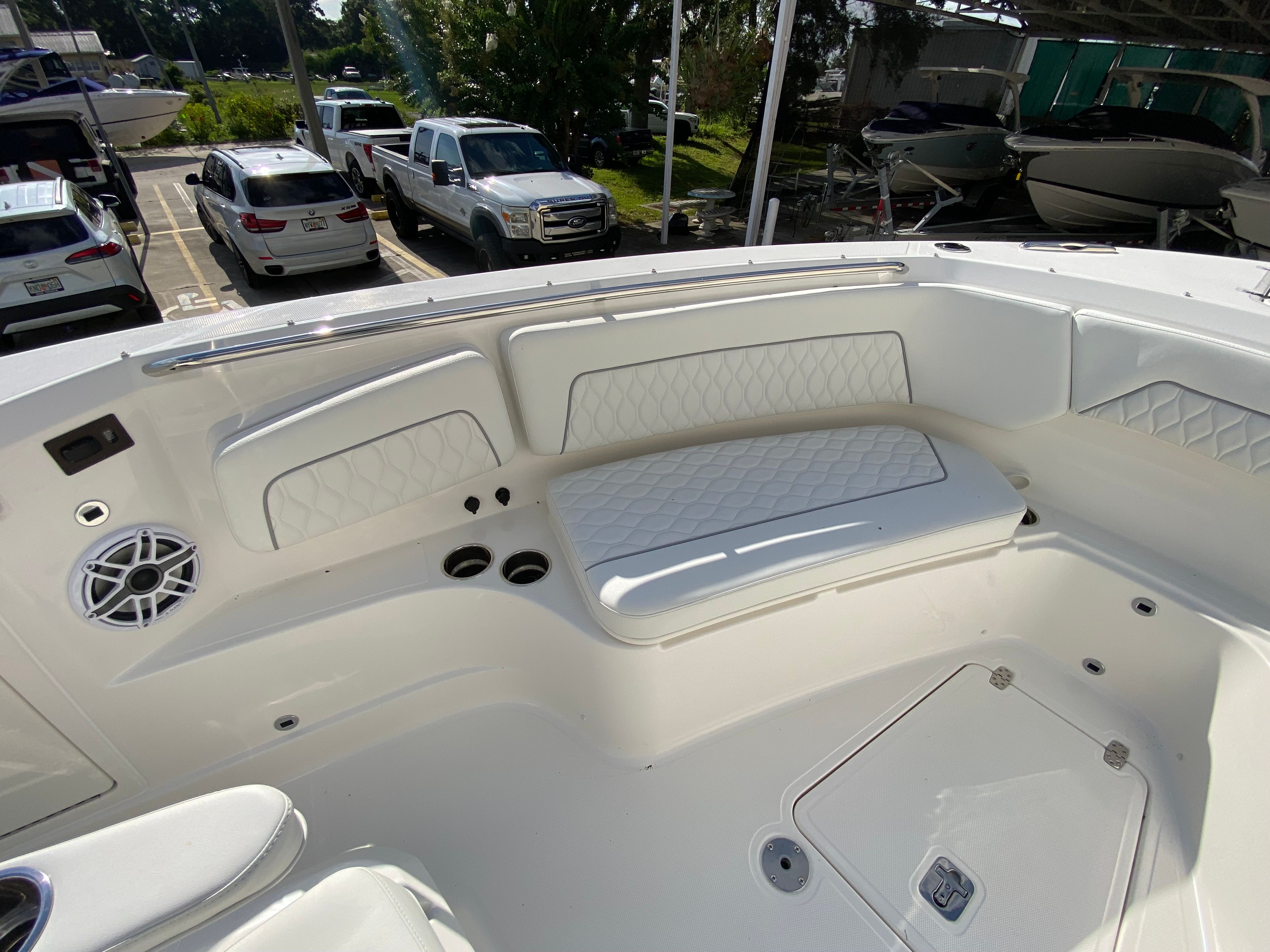 Owning the Pursuit S 328 means embracing a lifestyle of fun, relaxation, and adventure. The spacious Center Console layout encourages socializing, with plenty of room for friends and family to gather and enjoy the ride. The advanced air conditioning system keeps everyone comfortable, while the retractable sunshade offers relief from the midday sun, making long days on the water more enjoyable. The combination of powerful engines and intuitive joystick control means you can focus on having fun, knowing that handling and maneuverability are always under control.Fishing enthusiasts will love the dedicated rod holders and the convenience of having a cockpit refrigerator to store snacks and drinks for a full day on the water. The generator provides peace of mind, ensuring all your electronic devices and onboard systems remain powered throughout your journey. With its stylish design and premium finishes, the Pursuit S 328 is sure to impress guests and turn heads wherever you go.
