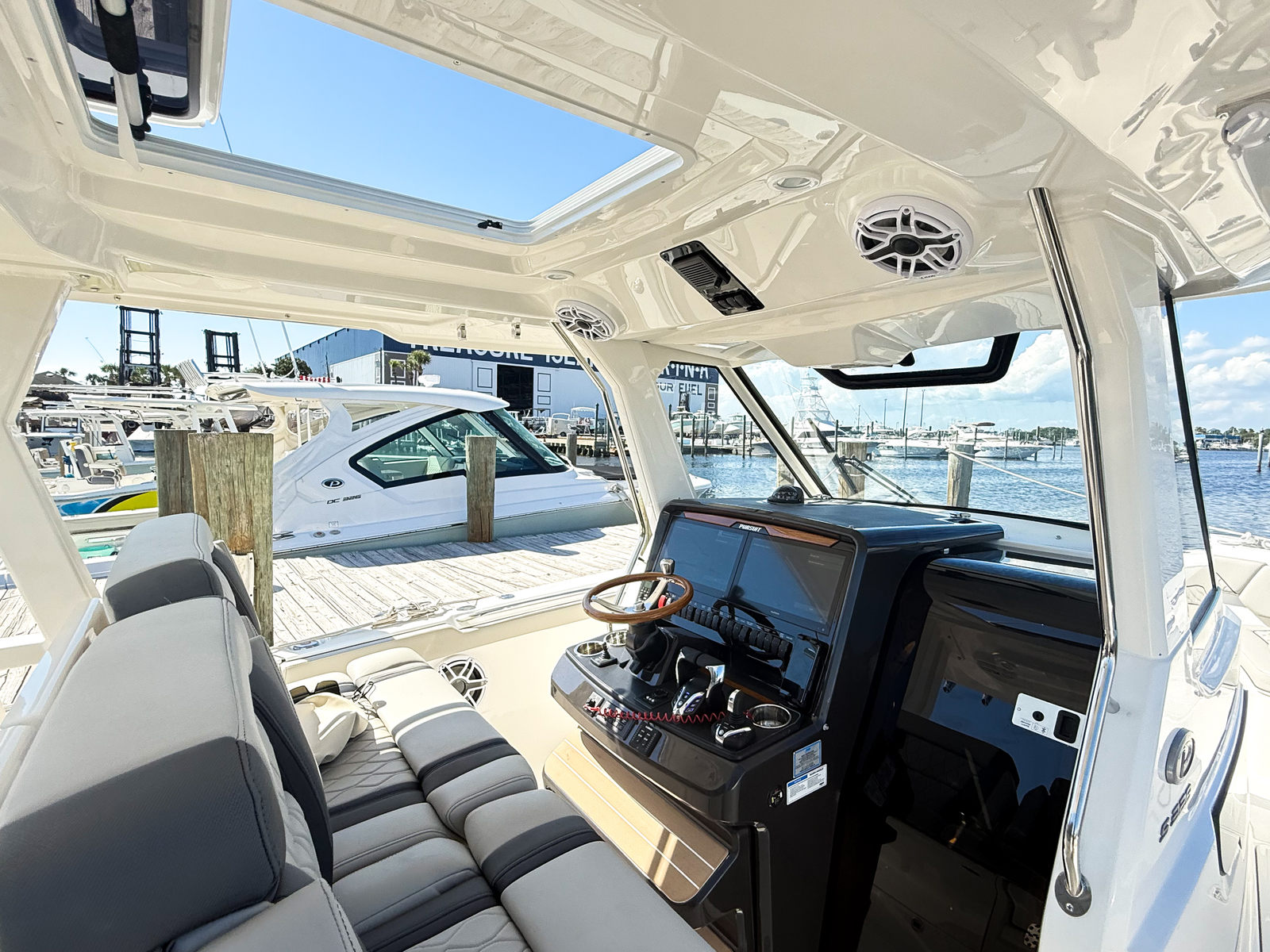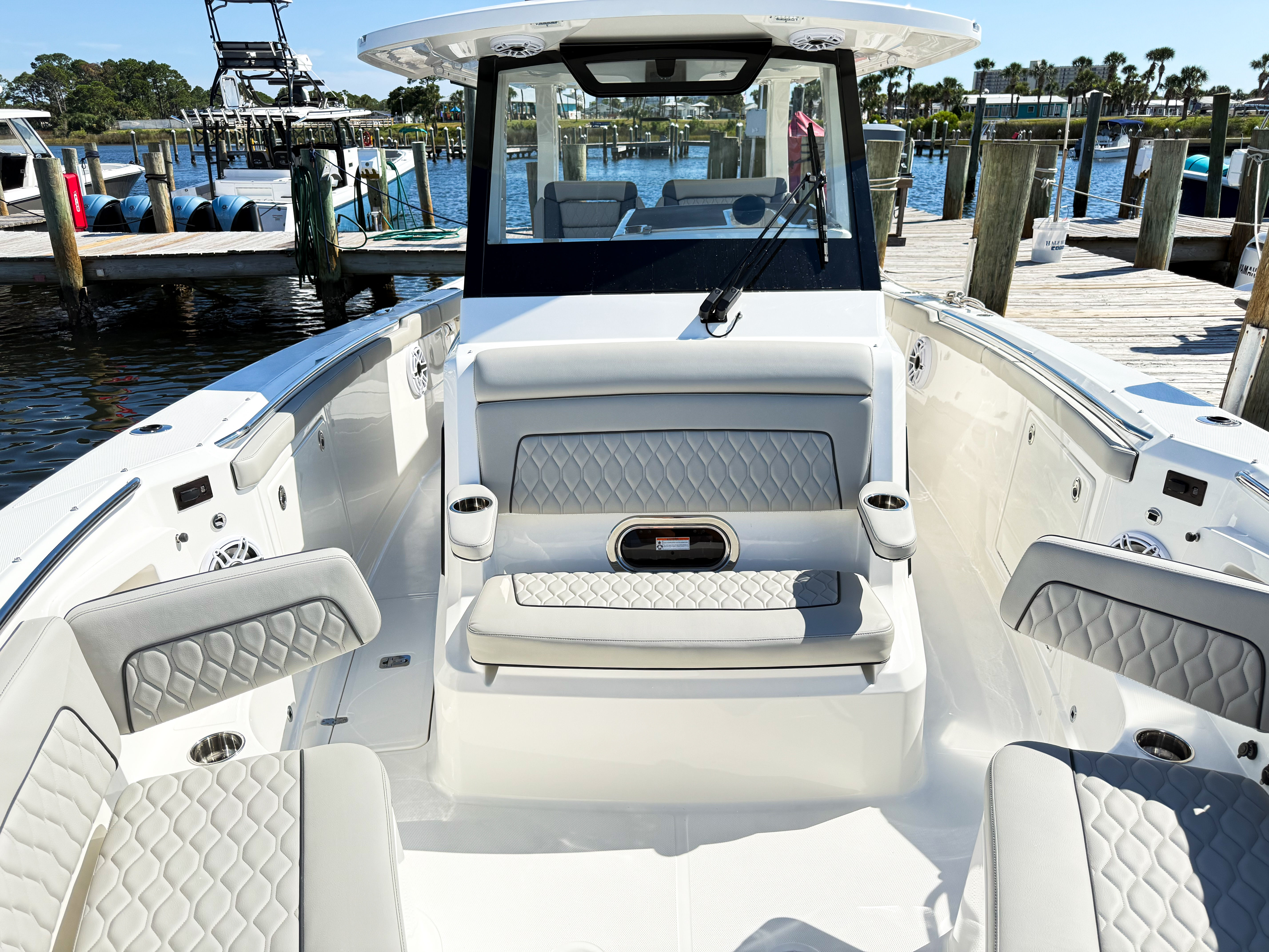 At the heart of the Pursuit S 328 are twin Yamaha F350 engines, finished in a striking pearlescent white. Together, these engines deliver a combined 700 horsepower, providing the muscle you need for swift acceleration, smooth cruising, and confident handling in a variety of conditions. The Yamaha Joystick Control system offers intuitive maneuverability, making docking and tight turns effortless, even for less experienced captains. With this powerful and responsive setup, the S 328 is ready to tackle offshore runs, coastal cruising, or quick trips to your favorite sandbar.