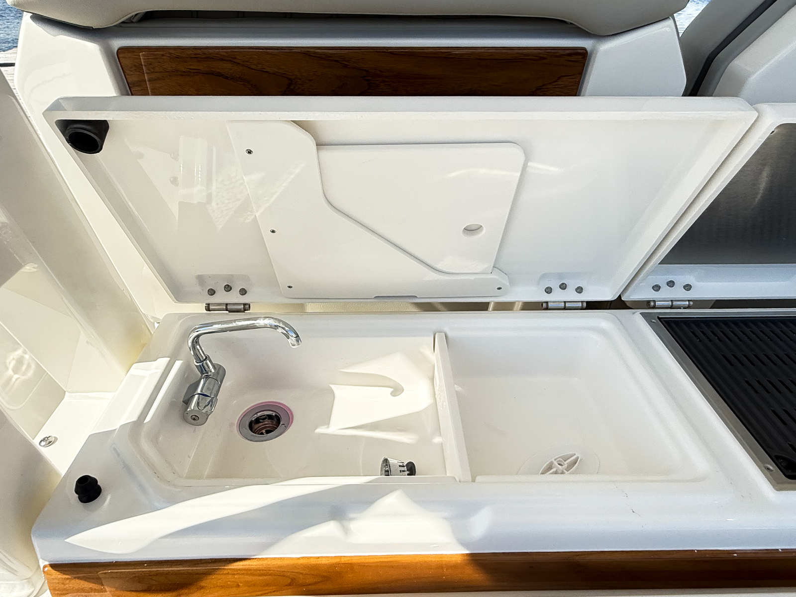 The Pursuit S 328 is as practical as it is luxurious. Its center console design offers excellent visibility and easy access around the boat, making it ideal for fishing, water sports, or simply relaxing in the sun. The intuitive Yamaha Joystick Control system simplifies docking and close-quarters maneuvering, reducing stress and making every outing more enjoyable. Ample storage throughout the boat ensures that your gear, supplies, and personal items are always within reach and neatly organized. The durable covers protect key areas from the elements, helping to maintain the boat’s pristine appearance and value over time.