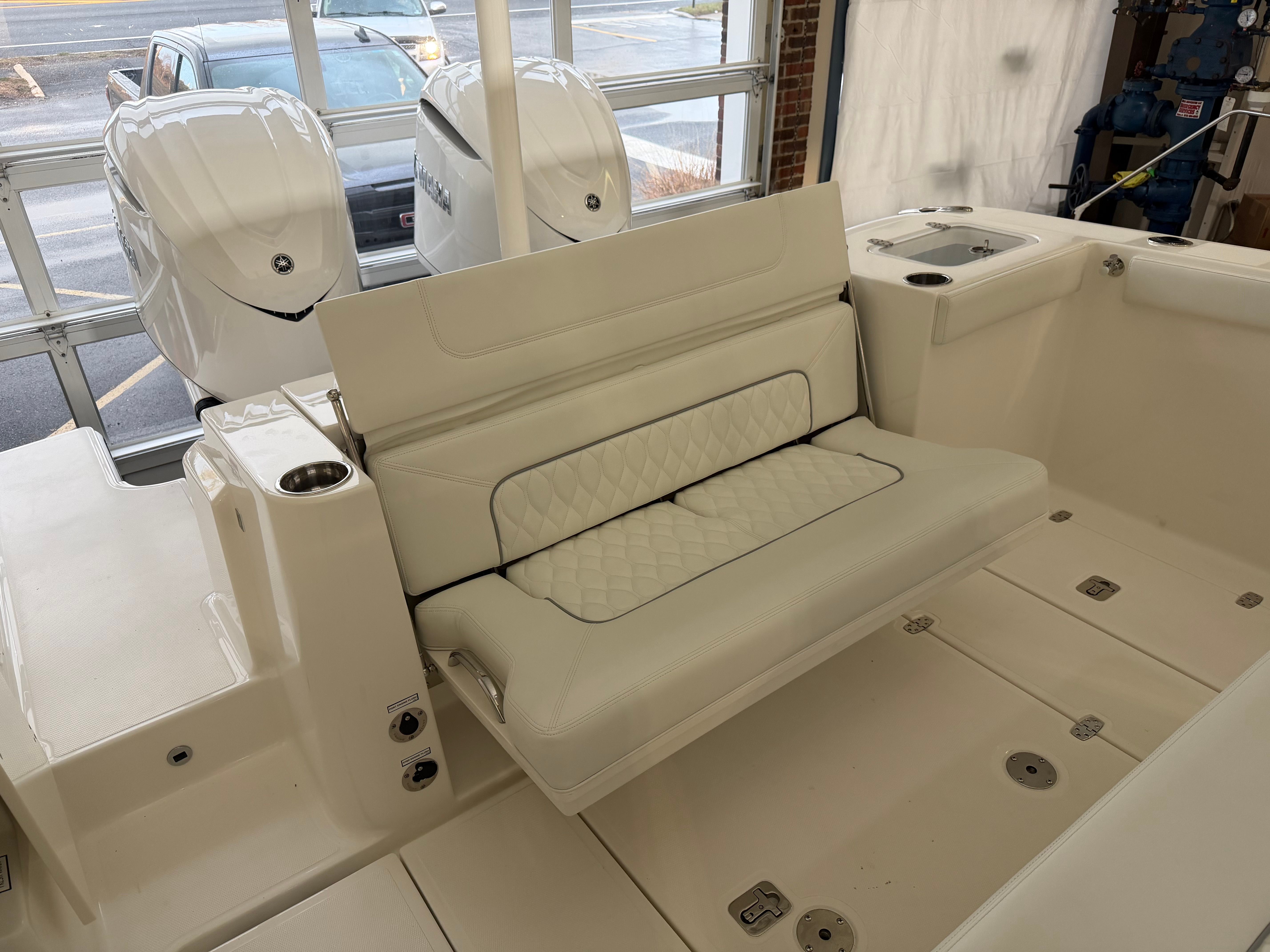 Powering the Pursuit S 328 are twin Yamaha Digital F350 V6 Offshore engines, finished in a stunning pearlescent white. Together, these engines deliver an impressive 700 horsepower, providing exhilarating speed and smooth handling in a variety of sea conditions. The integrated Digital Electric Steering (DES) and Helm Master EX Digital Electronic Control (DEC) system offer precise control and effortless maneuverability, ensuring every journey is as enjoyable as it is safe. The Yamaha Joystick Control with Full Maneuverability, including Set PointTM and Autopilot features, takes the stress out of docking and navigating tight spaces, allowing you to focus on the fun. Whether you’re cruising at high speeds or trolling for fish, the S 328’s advanced propulsion system guarantees a responsive and reliable ride.