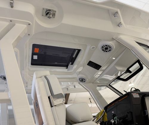 The Pursuit S 328 center console boat for sale is loaded with premium features designed to enhance your time on the water. The Multifunction Display Interface provides intuitive access to navigation, engine data, and entertainment controls, keeping you informed and in command at all times. The manual engine flushing system simplifies maintenance, helping you keep your investment in top condition.Anglers will appreciate the four bow rod holders, six hardtop corner-mounted rod holders, two kingfish rod holders, and Gemlux Deluxe 18’ Hybrid carbon fiber outriggers with a double rigging kit and gunwale line tensioners. These features make the S 328 a formidable fishing platform, ready for serious offshore action.For those who value comfort and convenience, the cockpit refrigerator with 12v temperature control replaces standard tackle storage, offering a perfect spot to keep drinks and snacks chilled. The custom retractable Makefast sunshade with one-touch operation provides instant relief from the sun, allowing you to create a cool, shaded oasis at the touch of a button.The SeaKeeper Ride 600 system replaces traditional trim tabs, delivering superior stability and ride comfort, even in choppy conditions. Entertainment is elevated with a premium stereo upgrade featuring M6 Sport speakers and a subwoofer with full spectrum backlighting, a custom-tuned 8-channel DSP amp, and a Sirius receiver with a three-month subscription. Whether you’re relaxing at anchor or cruising along the coast, your favorite music will sound incredible.A removable transom-mount ski tow adds versatility, making it easy to enjoy watersports with family and friends.