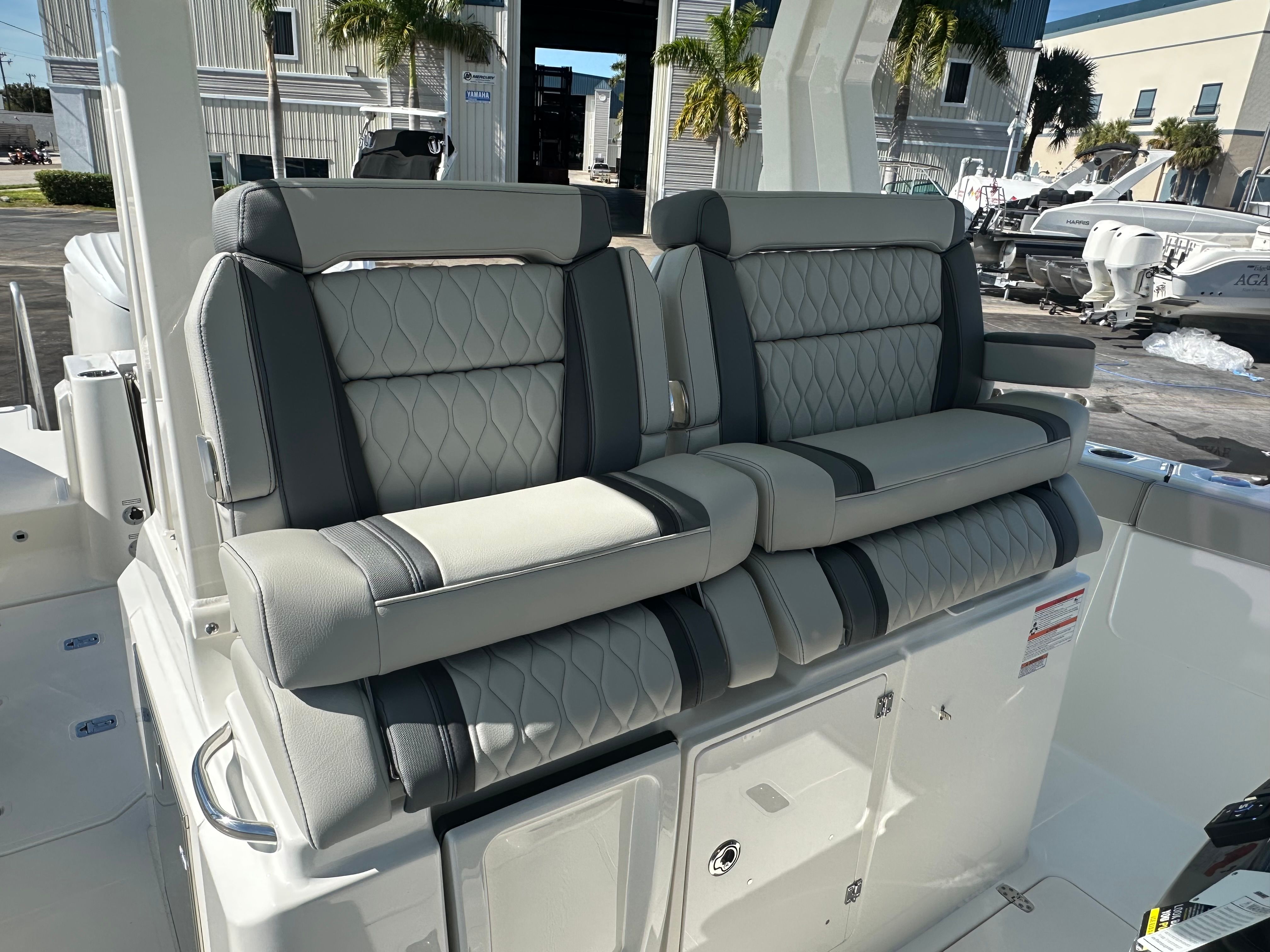 The versatility of the Pursuit S 328 Center Console makes it ideal for a wide range of activities and adventures. For families, the spacious deck and comfortable seating provide the perfect setting for picnics, swimming, and sunbathing. Anglers will appreciate the stability and maneuverability offered by the SeaKeeper Ride 600 and Yamaha Joystick Control, making it easy to chase the catch of the day. For those who love to entertain, the luxurious interior and stylish finishes create an inviting space for socializing and celebrating special occasions.Whether you are planning a weekend getaway, a day of offshore fishing, or a leisurely cruise along the coast, the Pursuit S 328 is equipped to handle it all. Its combination of performance, comfort, and style ensures that every outing is an adventure to remember.