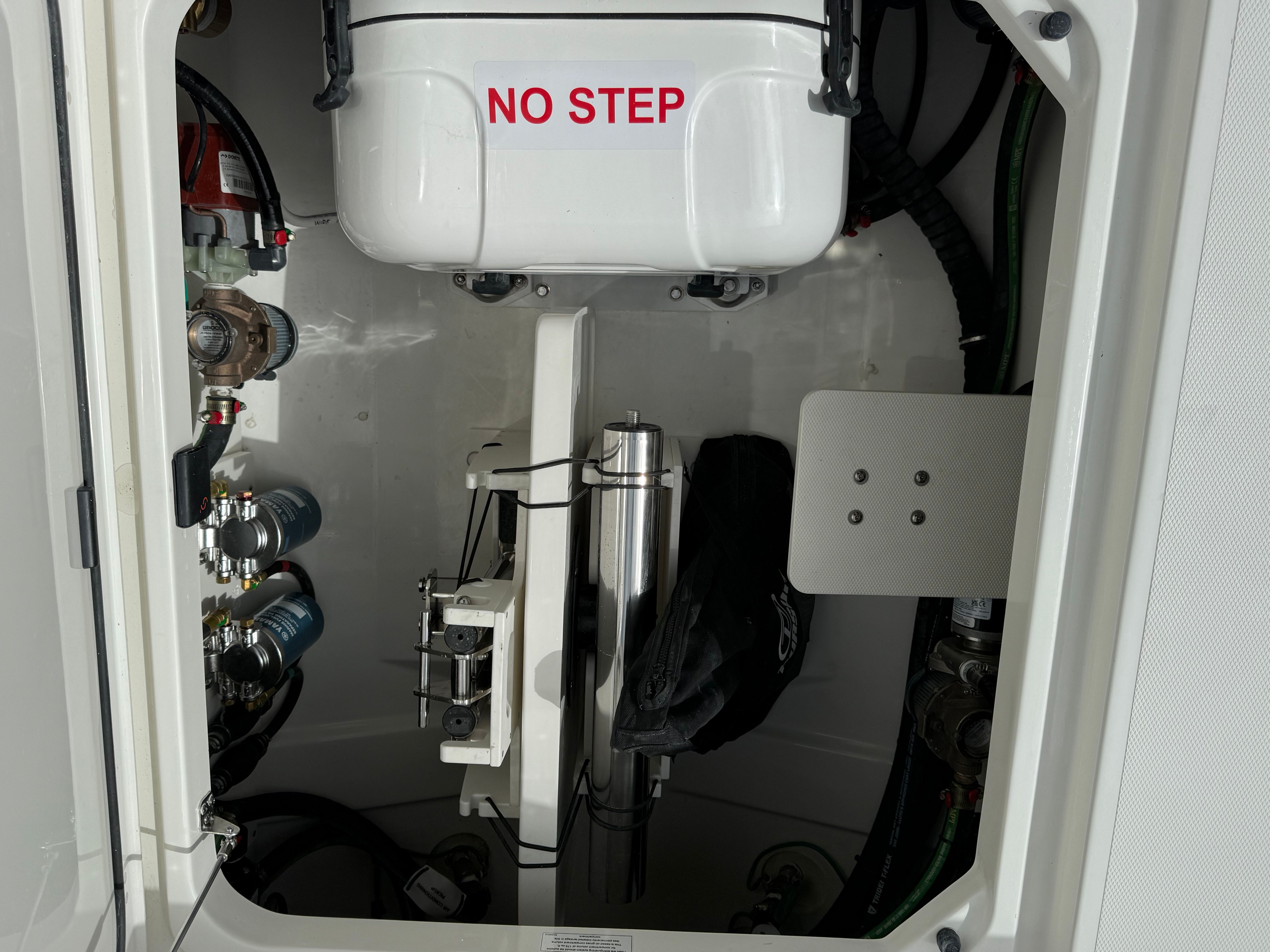 - Generator 120V/60Hz (5.0kW Fischer Panda Genset (16 gal diesel tank), Includes one GFI Outlet and 0.7 cu. Ft. Microwave (replaces upper storage in cabin)