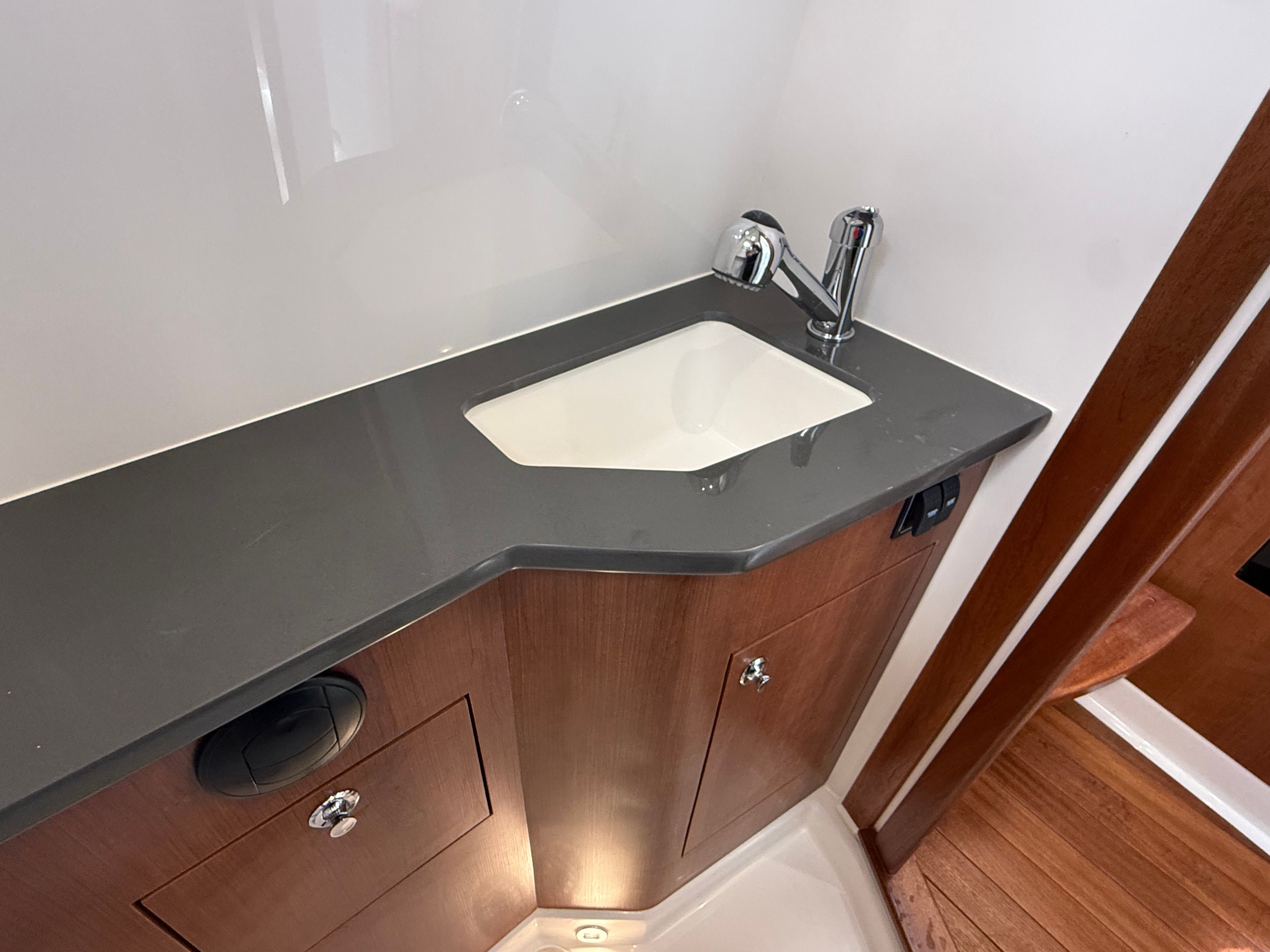 The Pursuit S 358 is packed with premium features designed to enhance every moment on the water. The Fresh White hull and Platinum bootstripe offer a timeless and sophisticated look, while the Carbon helm ensures a modern and functional command center. Inside, the Tranquil Sea fabric and Sea Salt exterior vinyl upholstery create a relaxing and stylish environment for both captain and guests.Comfort is a priority on the S 358, with 110v/60Hz cabin air conditioning featuring reverse cycle (6,000 BTU) to keep the interior cool and comfortable, no matter the weather. For those who love entertaining in the cockpit, the 110V/60Hz cockpit air conditioning with reverse cycle (16,000 BTU) ensures everyone stays refreshed during warm summer days.Enjoy the sun in style with the bow Mediterranean-style sunshade, which is easily stowable when not in use. For added convenience and luxury, the custom hardtop features an integrated stainless steel retractable Makefast sunshade with one-touch operation, allowing you to adjust your shade preferences effortlessly.
