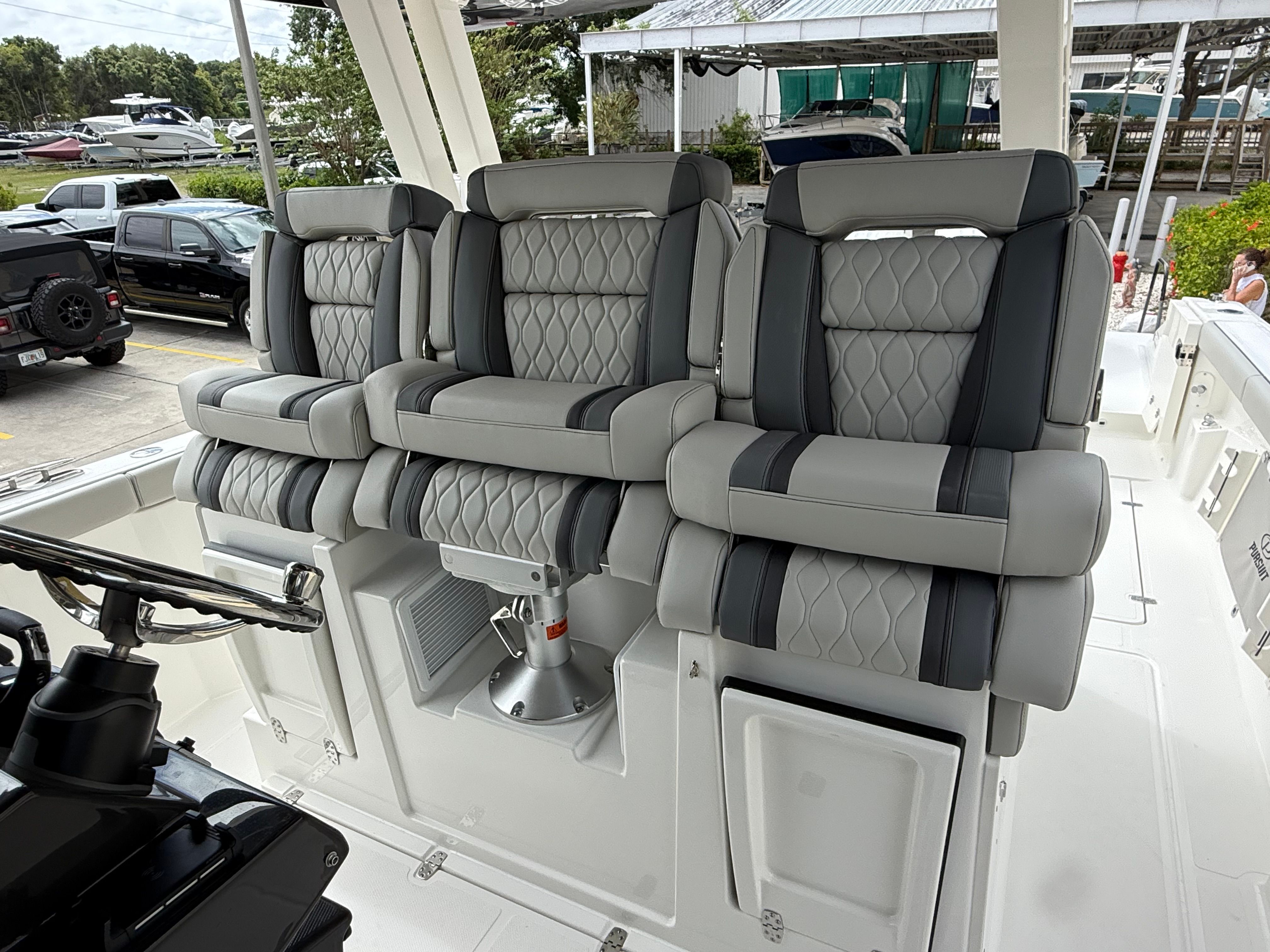 Owning the Pursuit S 358 center console boat means embracing a lifestyle of fun, relaxation, and adventure. The spacious layout is perfect for socializing, whether you’re hosting a sunset cruise, gathering with friends, or enjoying a quiet day on the water with family. The plush seating, premium upholstery, and climate-controlled spaces ensure that everyone on board experiences maximum comfort.The advanced air conditioning systems in both the cabin and cockpit allow you to escape the heat and humidity, making every trip enjoyable regardless of the season. The innovative sunshade options provide flexible protection from the sun, so you can bask in the rays or retreat to the shade at your leisure.