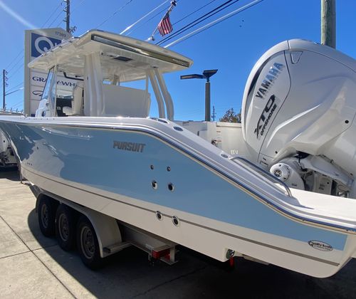 The 2025 Pursuit S 358 Center Console is a standout option for anyone seeking a Center Console boat for sale that combines luxury, power, and versatility. With twin Yamaha XF450XTO engines delivering 900 horsepower, a stunning Arctic Blue hull, and a host of premium features—including the Tranquil Sea Interior Package, stowable Mediterranean sunshade, three-sided enclosure, and Garmin weather receiver—this new Pursuit boat for sale is ready to elevate your boating lifestyle.Experience the thrill of cutting-edge performance, the comfort of thoughtful design, and the joy of unforgettable adventures with the Pursuit S 358. Don’t miss your chance to own this exceptional Center Console—contact your dealer today to learn more and schedule a viewing.