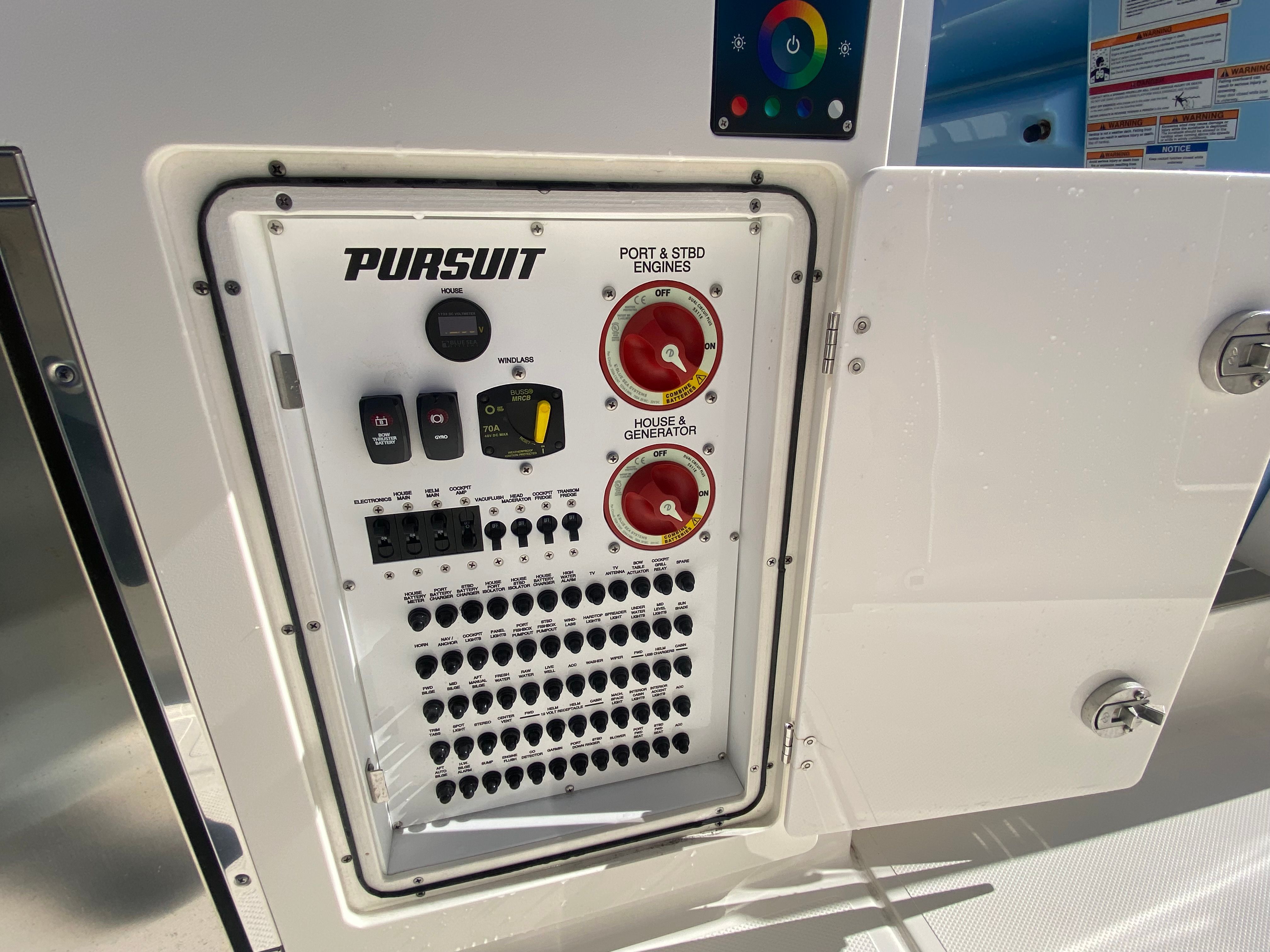 The Pursuit S 358 Center Console is packed with premium features that elevate your boating experience. The Arctic Blue hull is complemented by a black bootstripe with a black accent, creating a visually stunning profile. The helm and footrest are finished in a sleek carbon color, while the hardtop liner shines in fresh white, adding to the boat’s contemporary aesthetic. Step aboard and you’ll be greeted by the Tranquil Sea Interior Package, which enhances comfort and style throughout the vessel.For those who love to soak up the sun, the forward Mediterranean style sunshade (stowable) by Suntex offers flexible protection, allowing you to enjoy the outdoors while staying cool and comfortable. The three-sided enclosure, crafted from Stamoid and Makrolon materials, provides shelter from wind and spray, making it easy to extend your boating season and enjoy the water in a variety of conditions. The Garmin GXM 54 Sirium SXM Weather Receiver keeps you informed with real-time weather updates, ensuring safe and enjoyable outings. A white Stamoid instrument cover adds a finishing touch, protecting your helm controls and maintaining the boat’s pristine appearance.